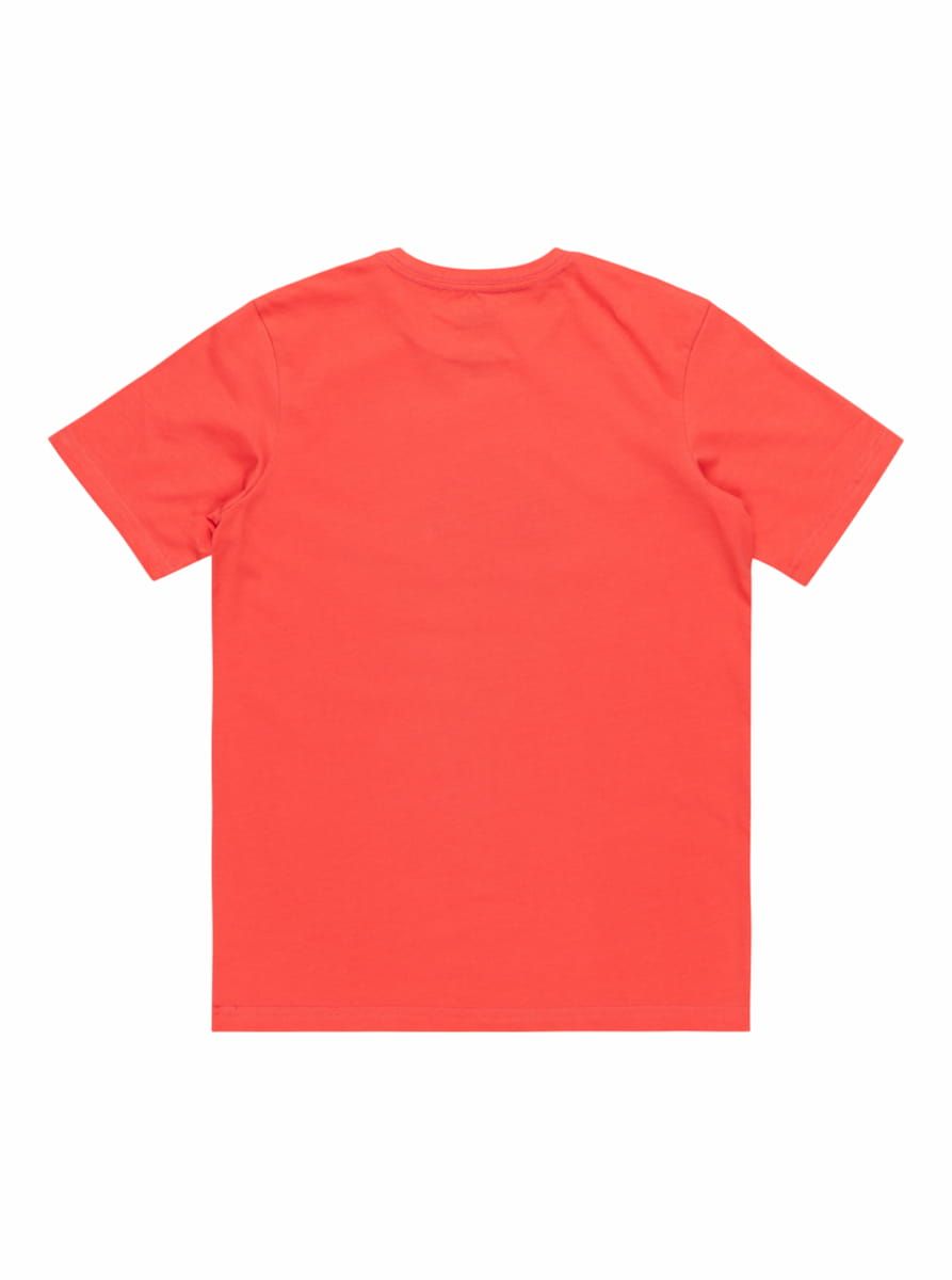 Esta camiseta juvenil básica en intenso color rojo presenta corte clásico y cómodo, cuello redondo, manga corta, el logo de la ola y la montaña de Quiksilver serigrafiado en tono negro en la parte delantera, junto con una pequeña etiqueta de la marca tejida en la manga izquierda.