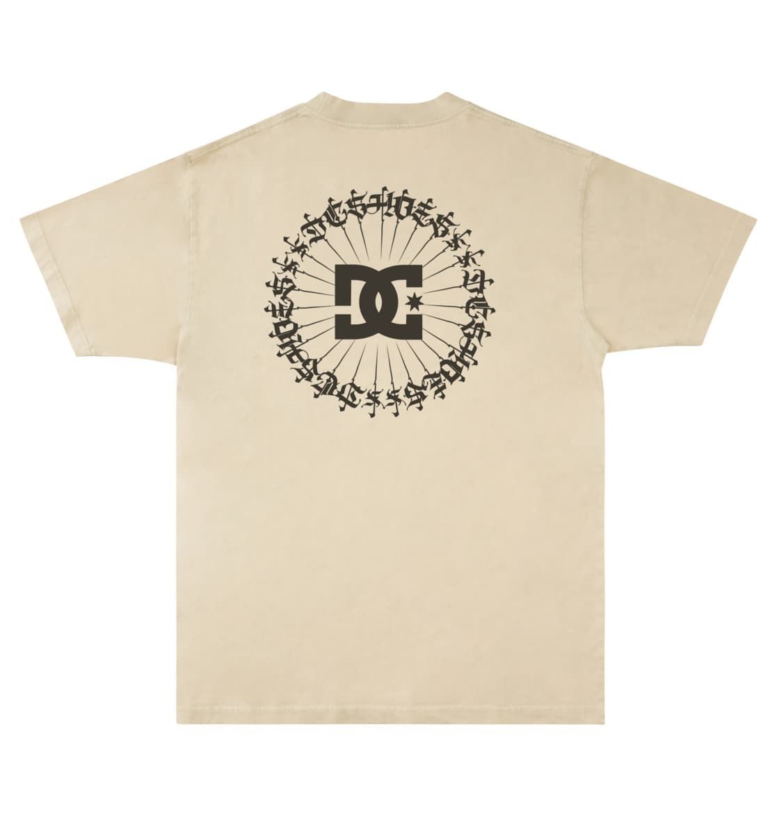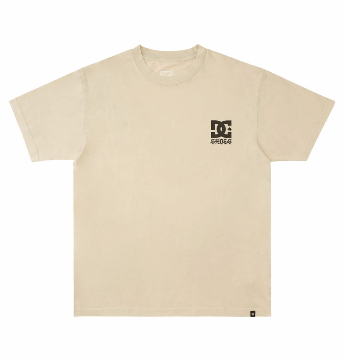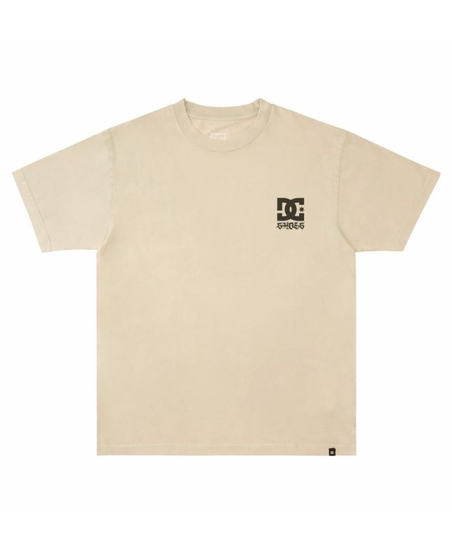 La camiseta de manga corta para hombre Hoodlum beige para hombre tiene una etiqueta de DC Shoes cosida en el dobladillo inferior.