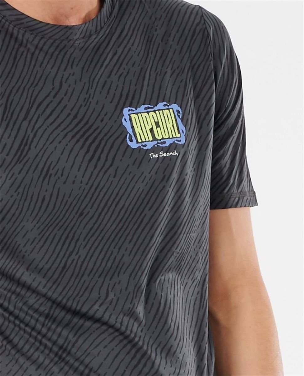 Esta camiseta de corte ajustado cuenta con cuello redondo, manga corta, protección UV de 50+, y una impresión artística con el logo de Rip Curl en el pecho.