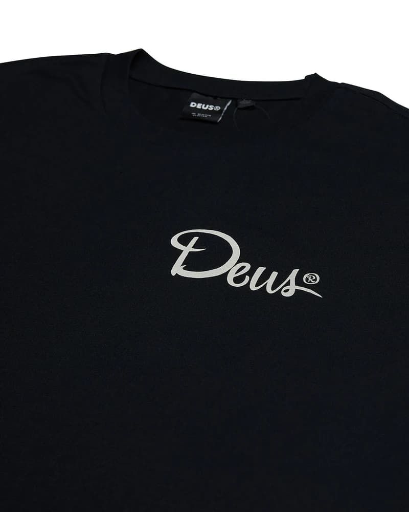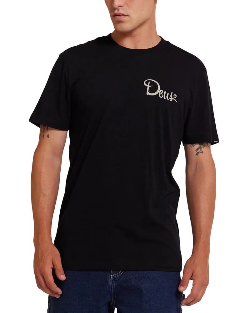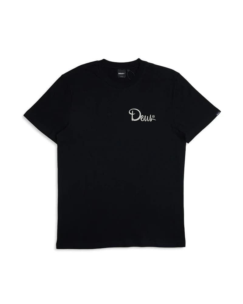 La camiseta de manga corta para hombre Hefferlump Tee en tono negro (Black) de Deus Ex Machina está confeccionada con tejido jersey de 100% algodón orgánico peinado (150g).