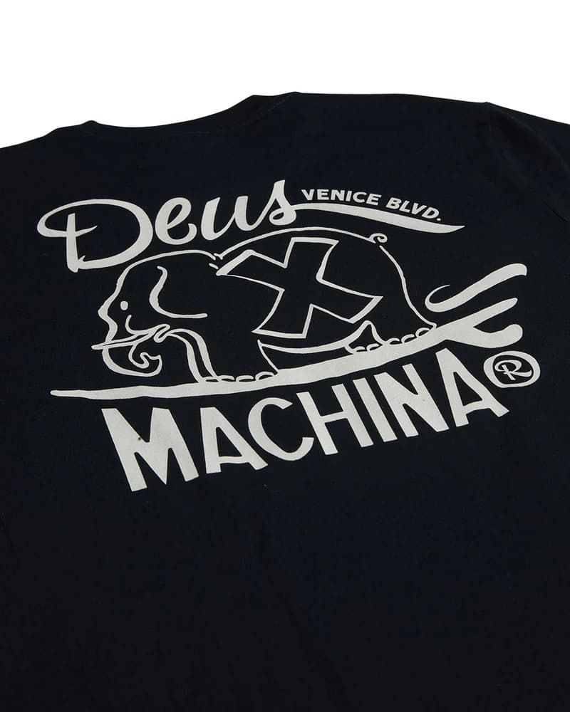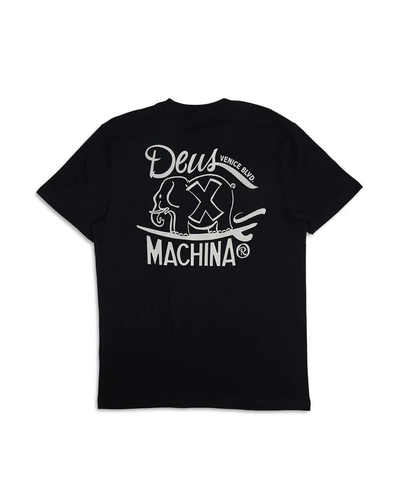 Esta camiseta orgánica de ajuste regular cuenta con tejido lavado en prenda para mayor suavidad, cuello redondo, manga corta, serigrafiado Deus en el lado izquierdo del pecho, junto con un estampado original Deus Ex Machina de un elefante impreso en la espalda.