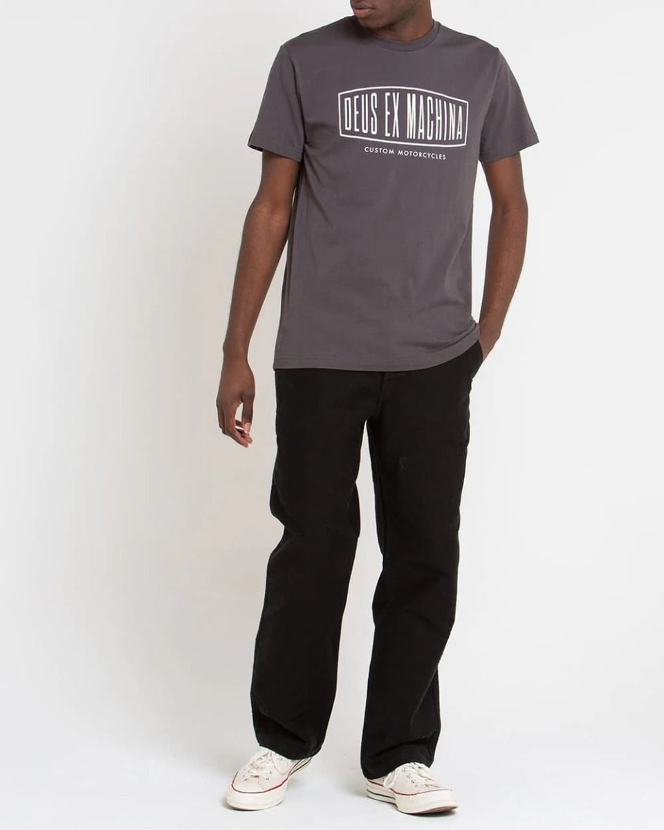 La camiseta de manga corta para hombre Rego Tee en tono antracita (Anthracite) de Deus Ex Machina está fabricada con 100% tejido de punto jersey de algodón orgánico peinado (150g).