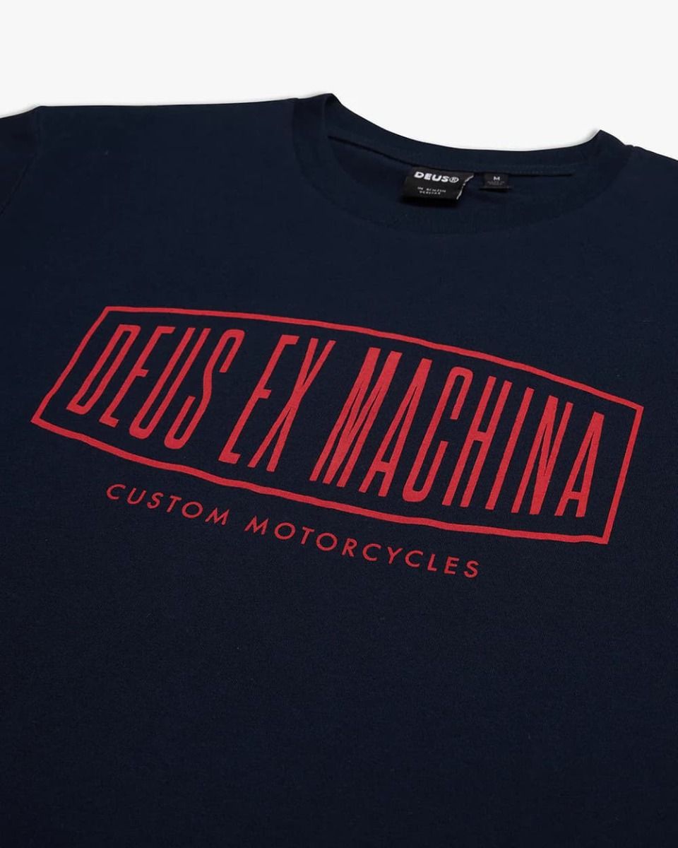 Esta suave camiseta de ajuste regular cuenta con lavado en prenda, cuello redondo, manga corta y estampado delantero "Deus Ex Machina. Custom Motorcycles" en color rojo.