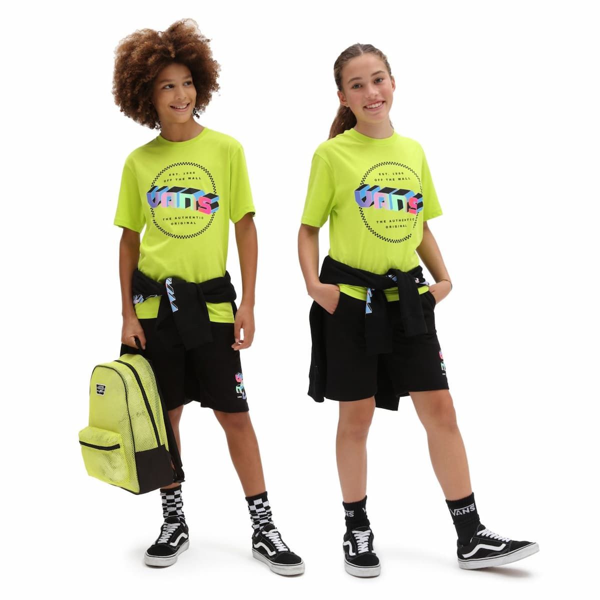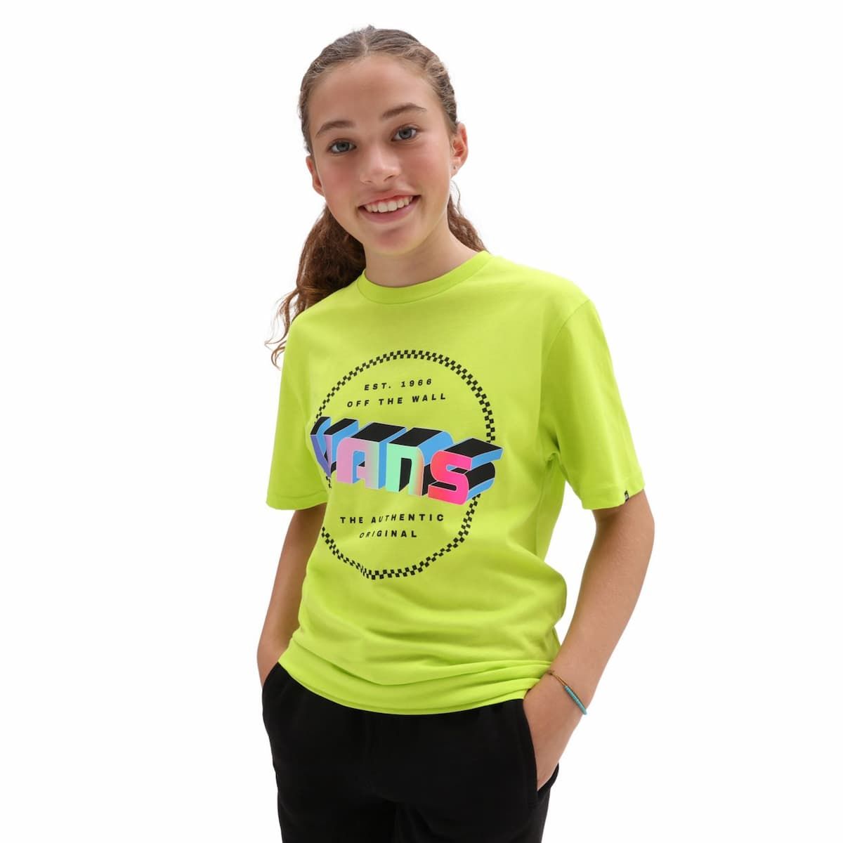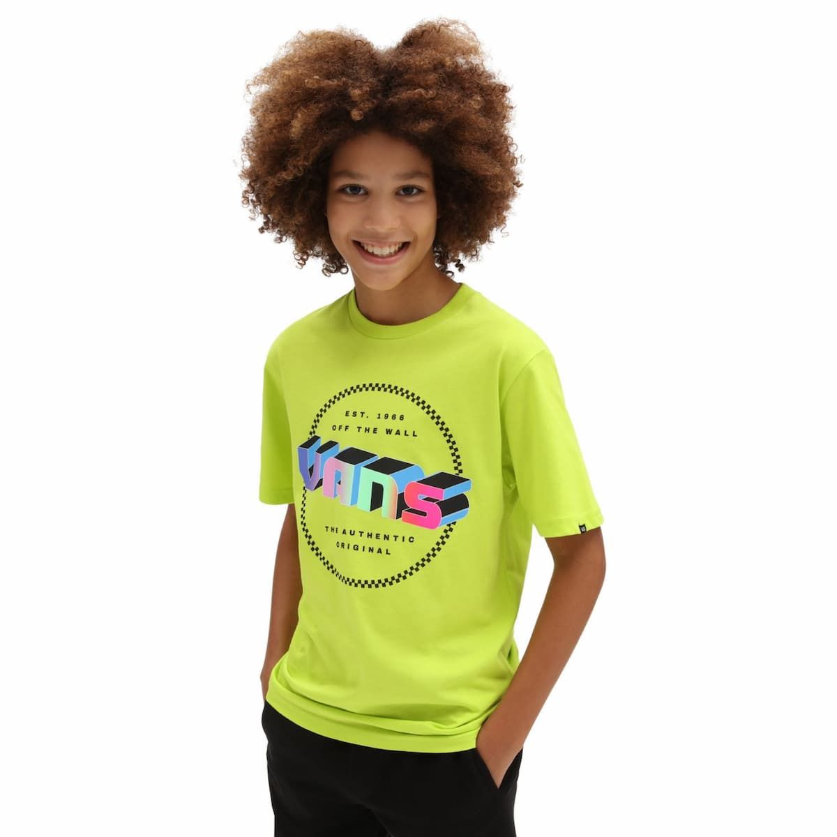 La camiseta para niños y niñas de entre 8 y 14 años Digital Flash Kids en tono lima (Evening Primrose) de Vans está confeccionada con 100% algodón cardado e hilado en anillos (185g/m2).