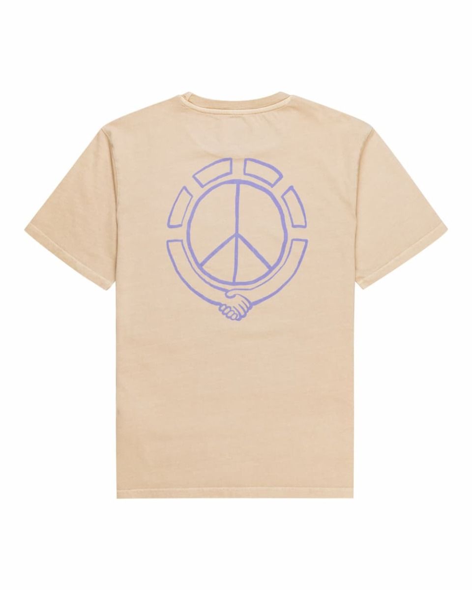 Esta camiseta eco-friendly de corte normal cuenta con cuello redondo, manga corta, serigrafiado Element en el lado izquierdo del pecho y un estampado artístico con el Símbolo de la Paz en la espalda.