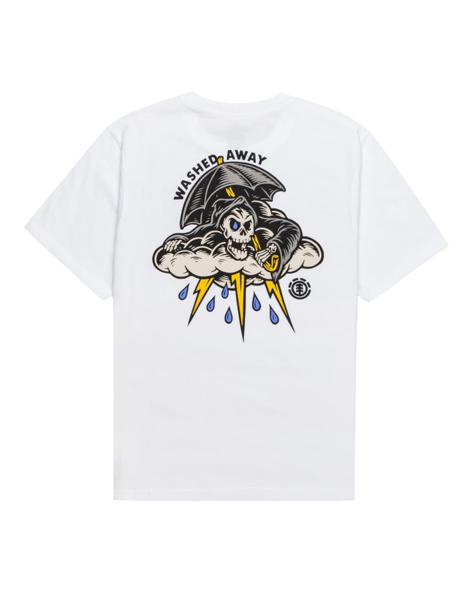 Este camiseta sostenible de corte normal, perteneciente a la Colección Washed Away de Timber! y Element Brand, cuenta con cuello redondo, manga corta y gráficos exclusivos del artista Chad Eaton (AKA Timber!) serigrafiados en el lado izquierdo del pecho y en la espalda.