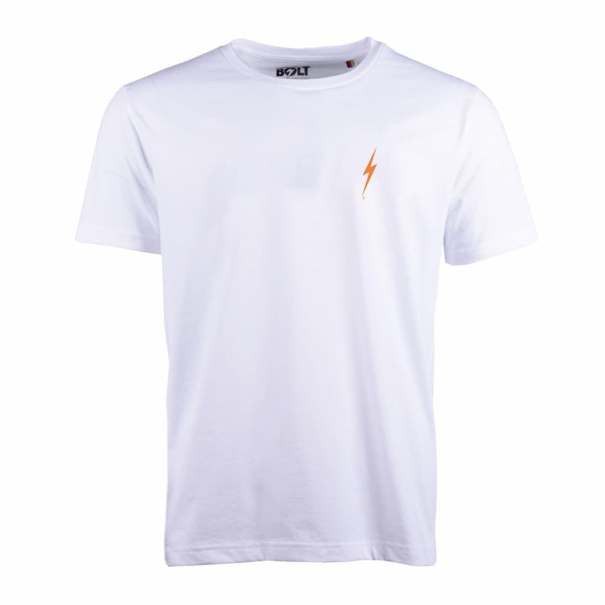 La camiseta de manga corta Energy Board blanca para hombre tiene el sello de garantía Lightning Bolt.
