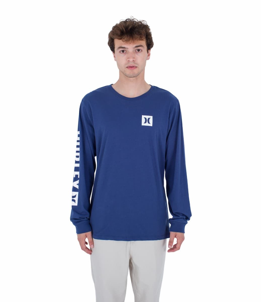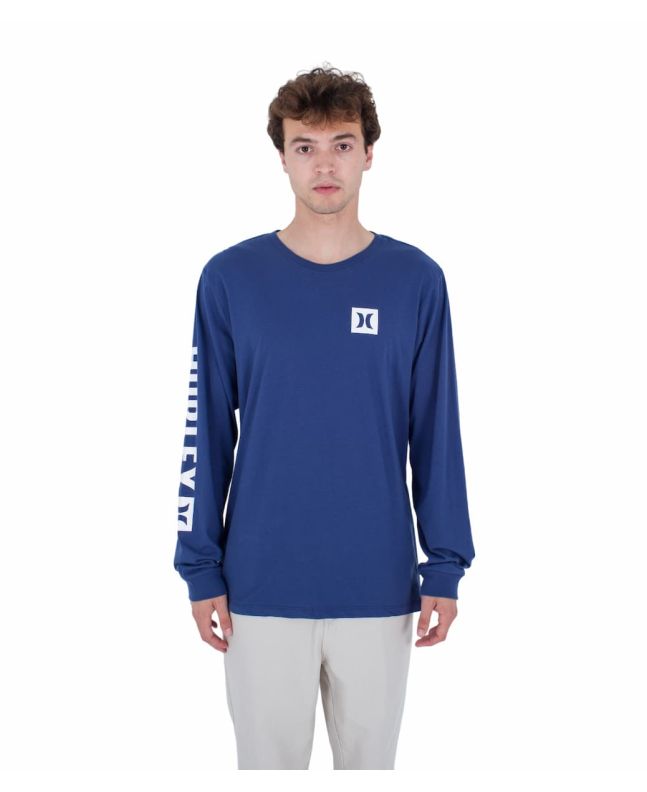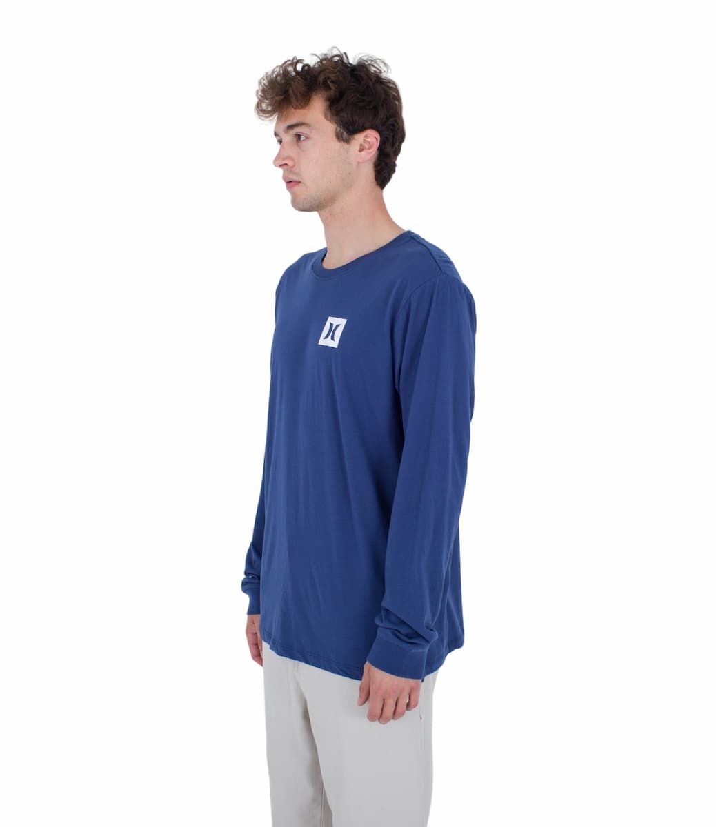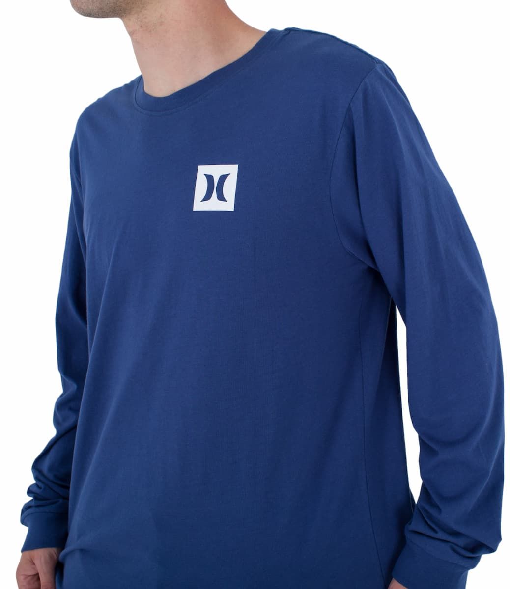 La camiseta de manga larga para hombre EVD The Box LS Tee en tono azul marino (Submarine) de Hurley está confeccionada con 100% algodón de peso medio (150gsm).