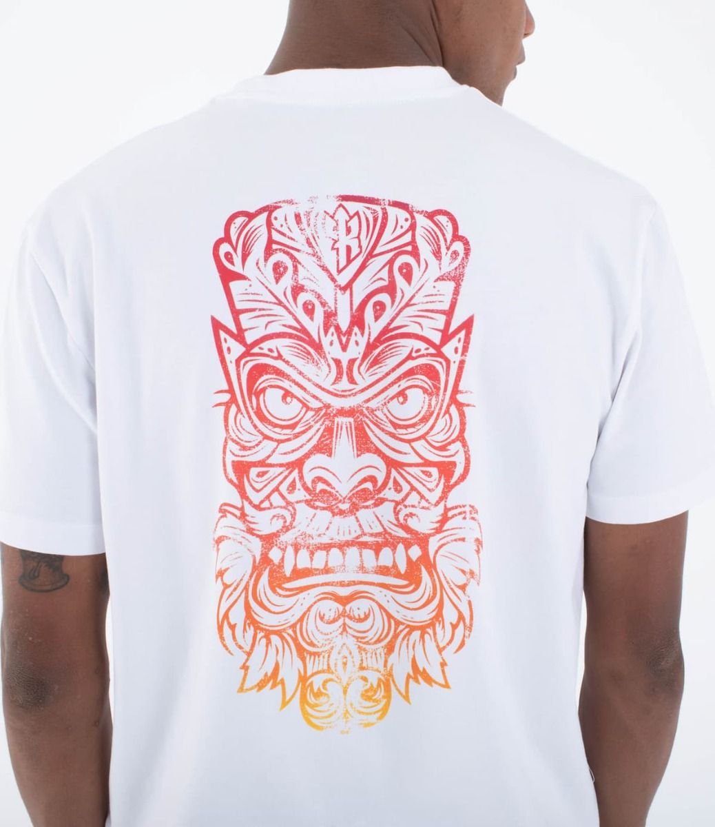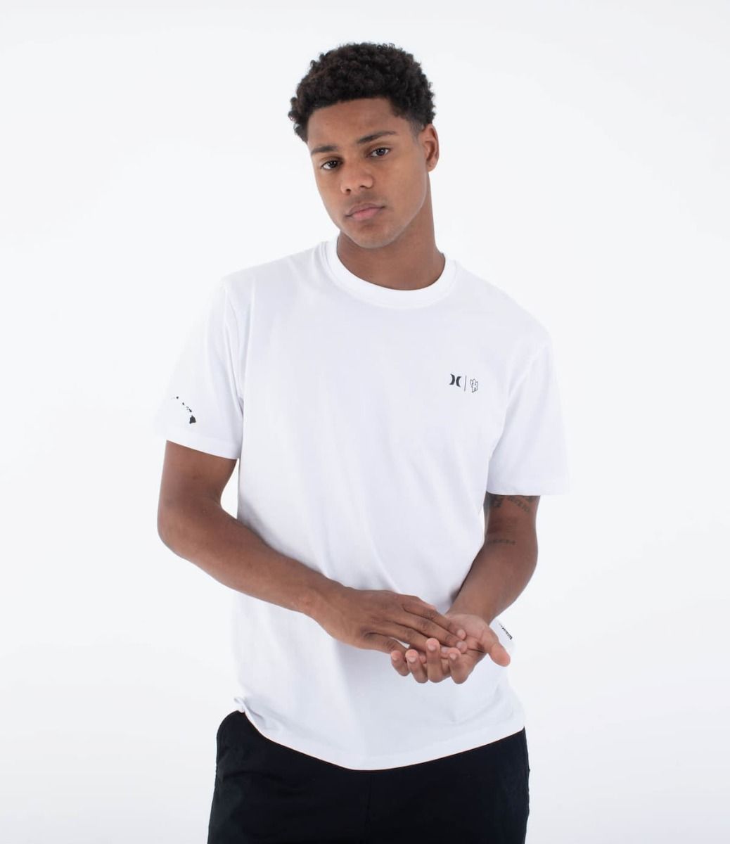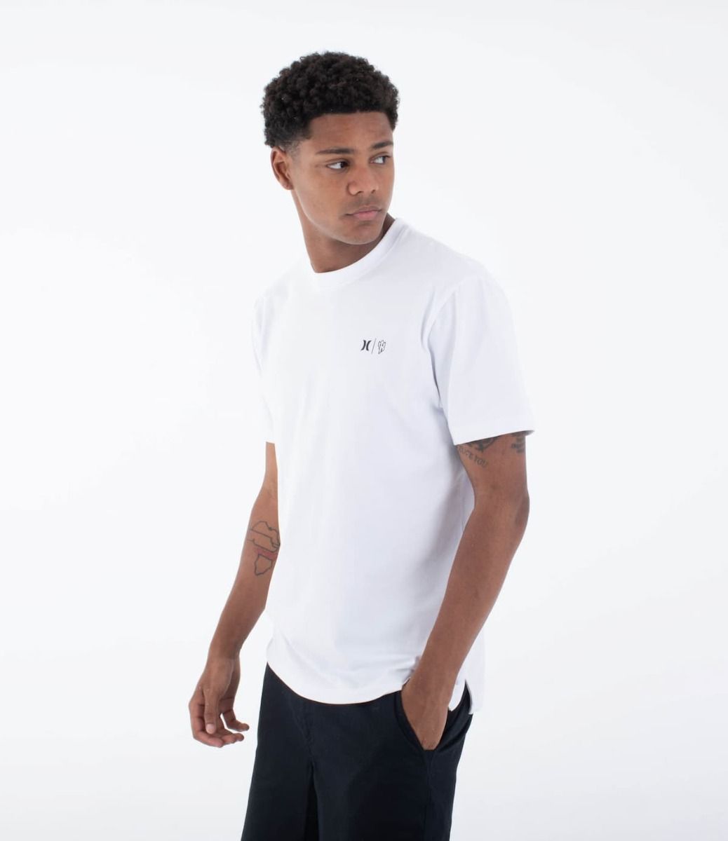 La Camiseta Hurley Kai Tiki SS Tee en blanco (White) para hombre es una prenda especial creada en colaboración con el legendario Kai Lenny, celebrando la cultura hawaiana y el espíritu del surf.