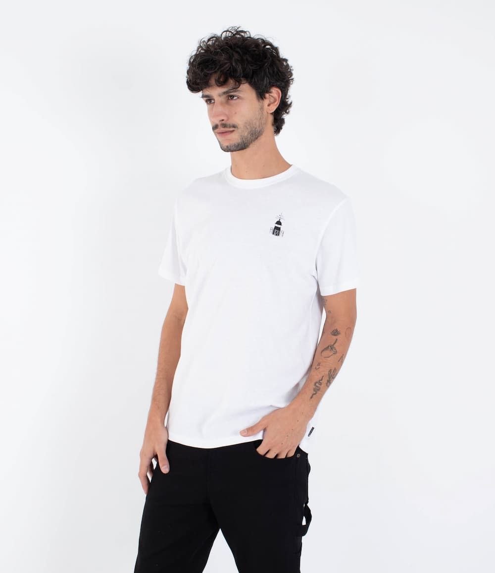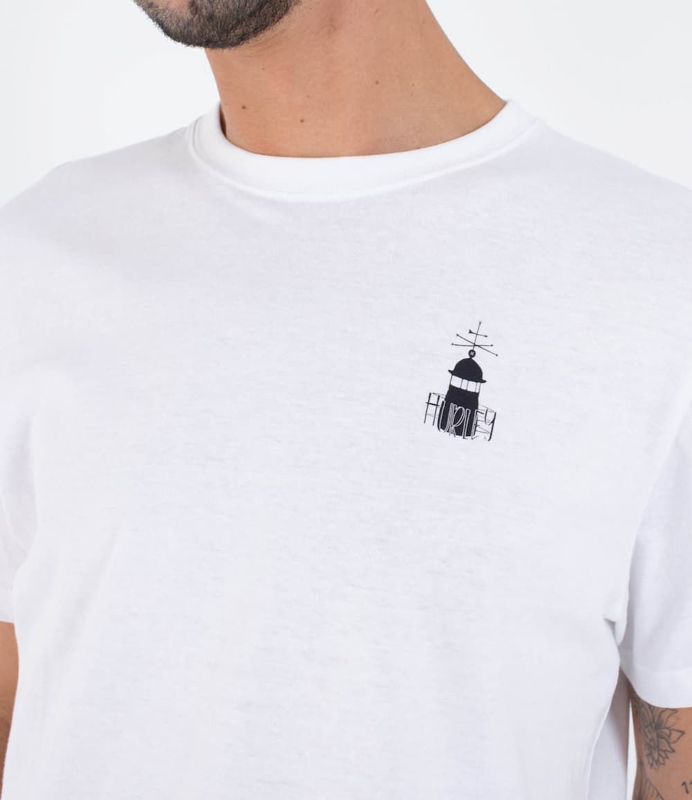 El pequeño gráfico frontal con el faro y el logo Hurley mantiene la estética minimalista, mientras que la espalda se convierte en el verdadero lienzo de expresión. Perfecta para el día a día o para moverte por la costa, esta camiseta respira cultura surfer por cada costura.