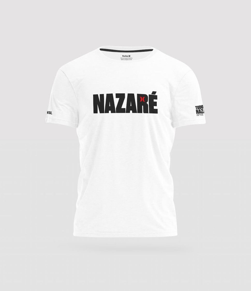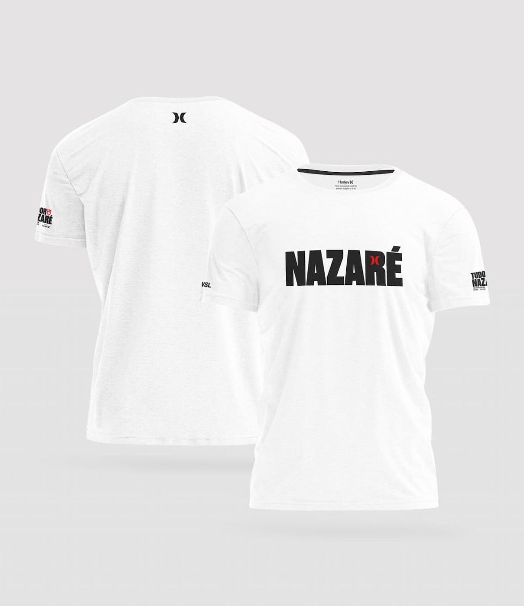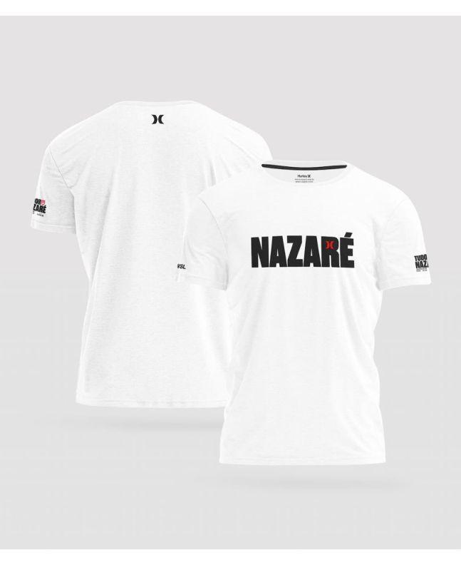 La camiseta orgánica Nazaré Solid blanca cuenta con ajuste regular, cuello redondo, manga corta, el logo de Nazaré y Hurley impreso en el pecho, impresión WSL en la manga derecha, impresión Tudor Nazaré Tow Surfing Challege x Hurley en la manga izquierda y el logotipo de Hurley estampado en la parte posterior del cuello.