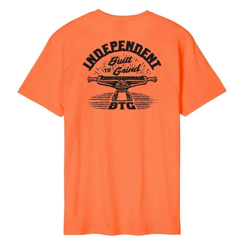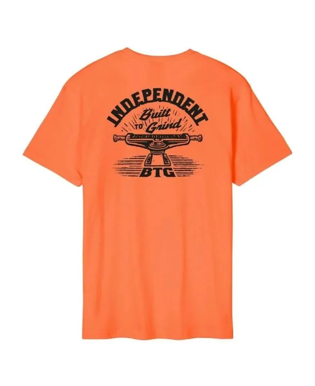 Camiseta Independent BTG Lino Truck naranja. 100% algodón, corte regular y gráficos Built To Grind en pecho y espalda.