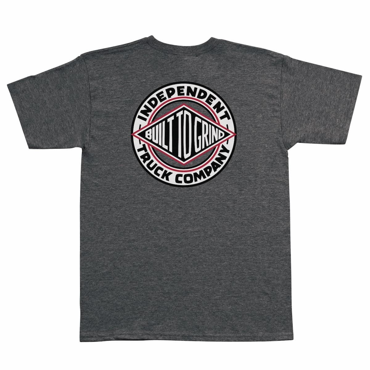 Camiseta Independent BTG Summit manga corta en gris oscuro jaspeado. Corte regular, tejido pesado de 6oz y gráficos Built To Grind en pecho y espalda.