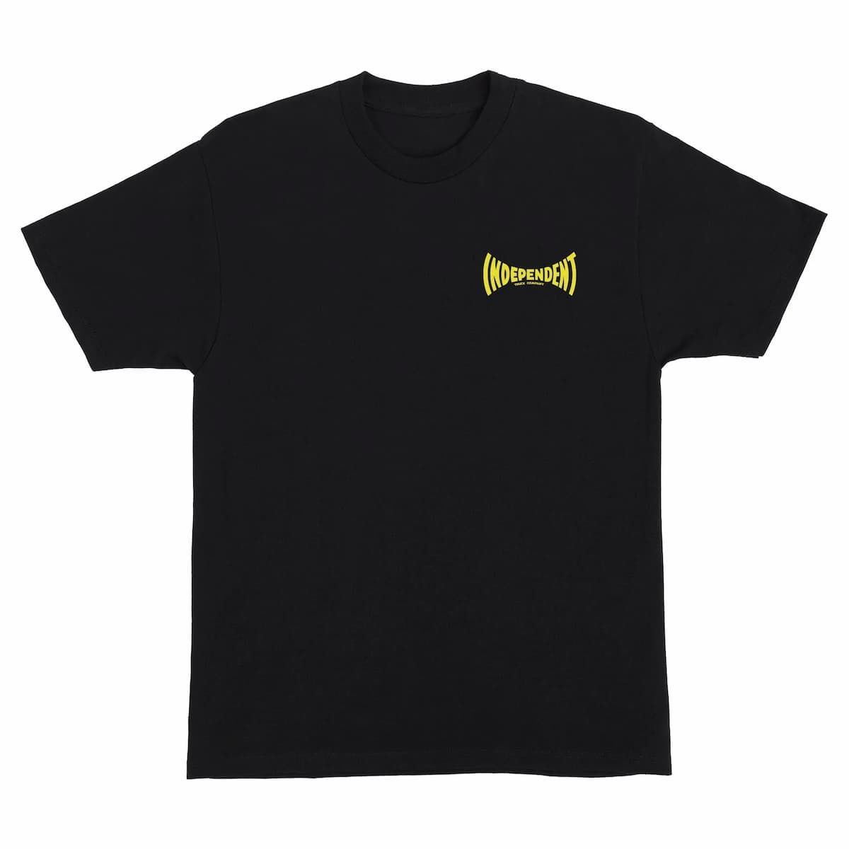Camiseta Independent Manufactured Span negra de manga corta. Algodón pesado 6oz, corte regular y gráficos en pecho y espalda.