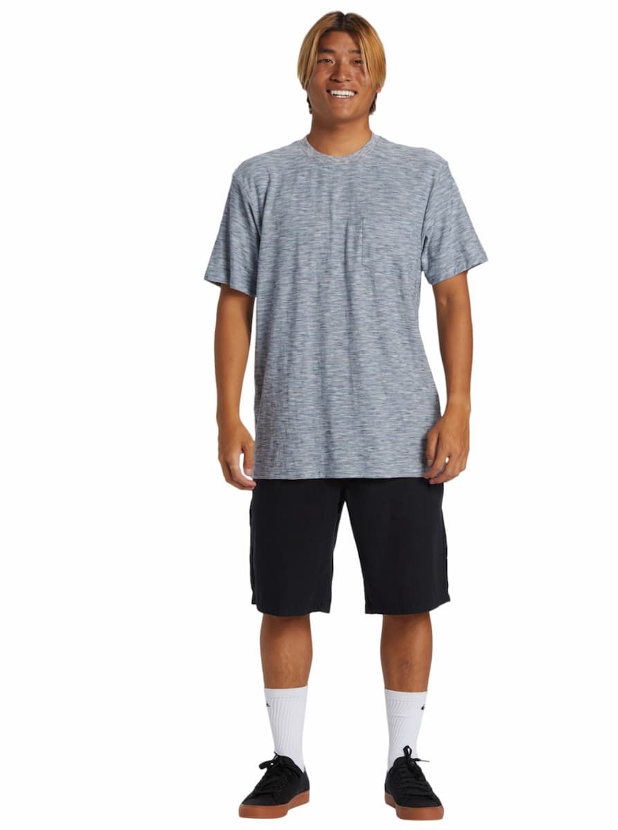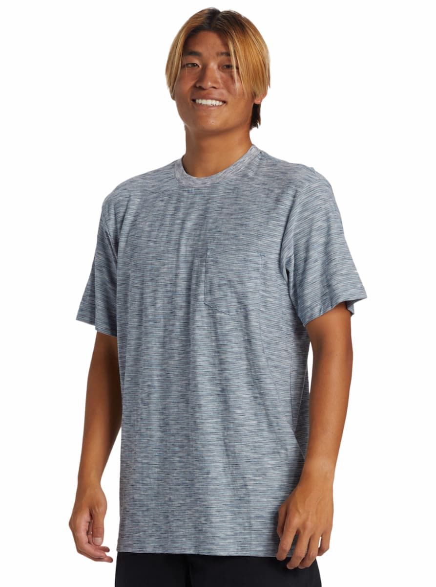 Esta camiseta ecológica azul de 100% algodón orgánico presenta corte clásico y tejido sometido a lavado en prenda para una suavidad excepcional, cuello redondo acanalado, manga corta, un bolsillo en el pecho, perfecto para guardar pequeños objetos esenciales, junto con una etiqueta Quiksilver tejida en la costura lateral.