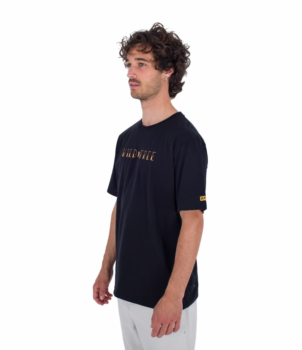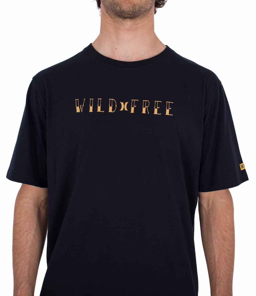 Esta camiseta básica de corte clásico cuenta con cuello redondo, manga corta, costuras laterales, serigrafiado Wild Free en la parte delantera, el logo Icon de Hurley impreso en la zona posterior del cuello y un parche con detalle FT77 (Filipe Toledo) tejido en la manga izquierda.