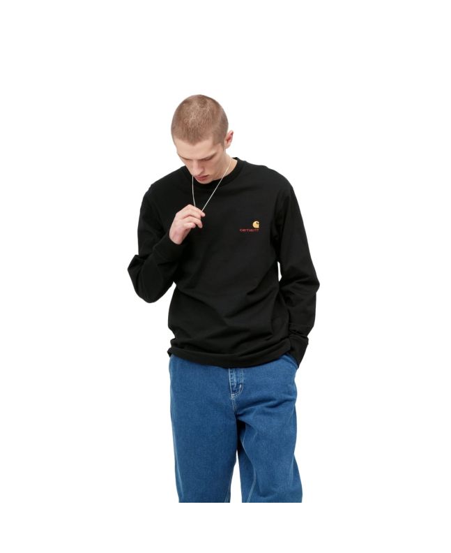 La camiseta de manga larga para hombre L/S American Script T-Shirt en negro (Black) de Carhartt WIP es una prenda esencial que no puede faltar en tu fondo de armario urbano. Con un diseño sencillo, esta camiseta de manga larga es perfecta para cualquier ocasión.