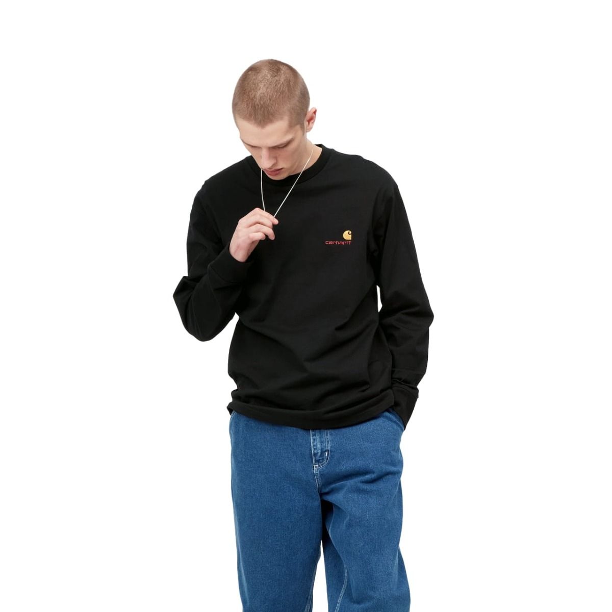 La Camiseta de Manga Larga Carhartt WIP American Script Negra para hombre es la opción perfecta si buscas una camiseta duradera, cómoda y con un diseño elegante. Ideal para completar tu colección de básicos con un toque de estilo Carhartt.