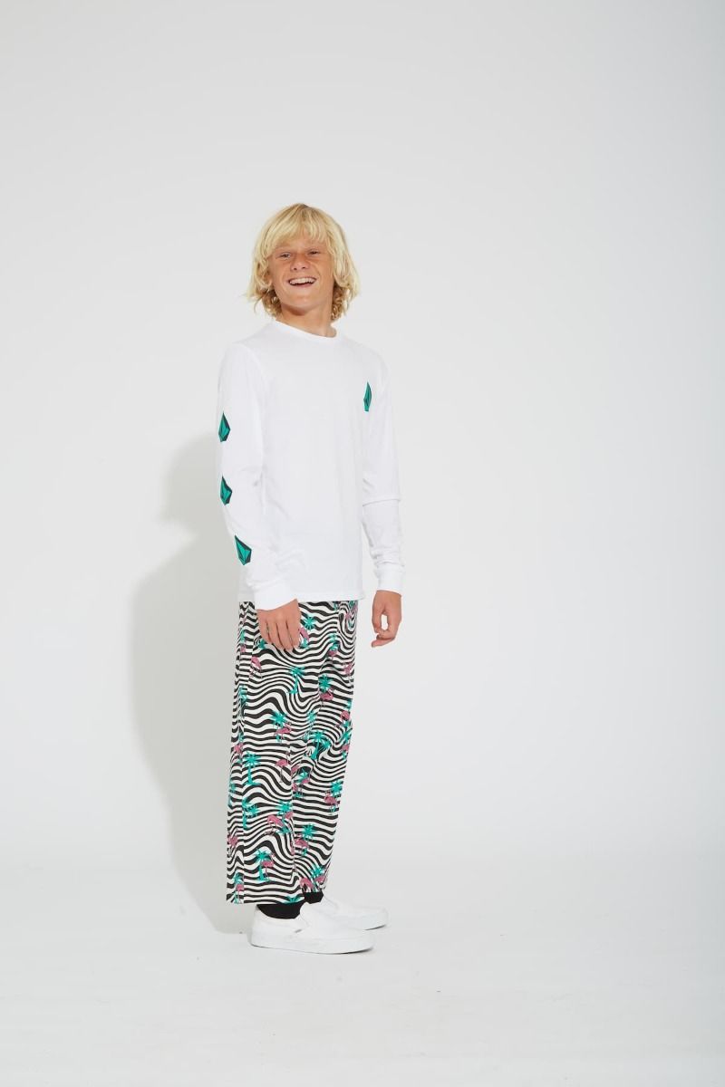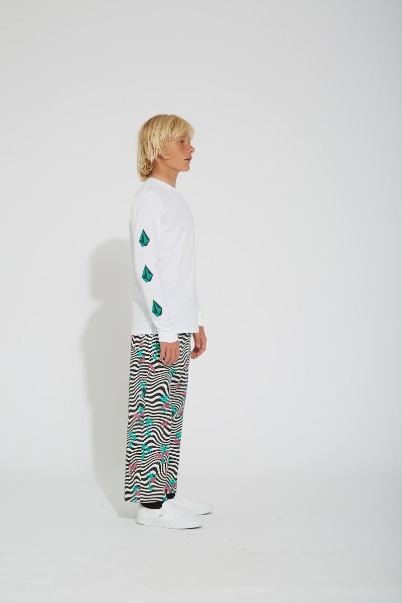 La camiseta de manga larga Iconic Stone Boy blanca para niño tiene el sello de garantía Volcom termofijado en el cuello interior.