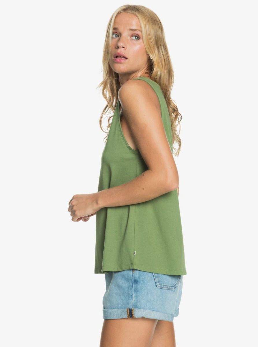 La camiseta sin mangas para mujer Closing Party de Roxy está confeccionada con tejido ligero en algodón orgánico.