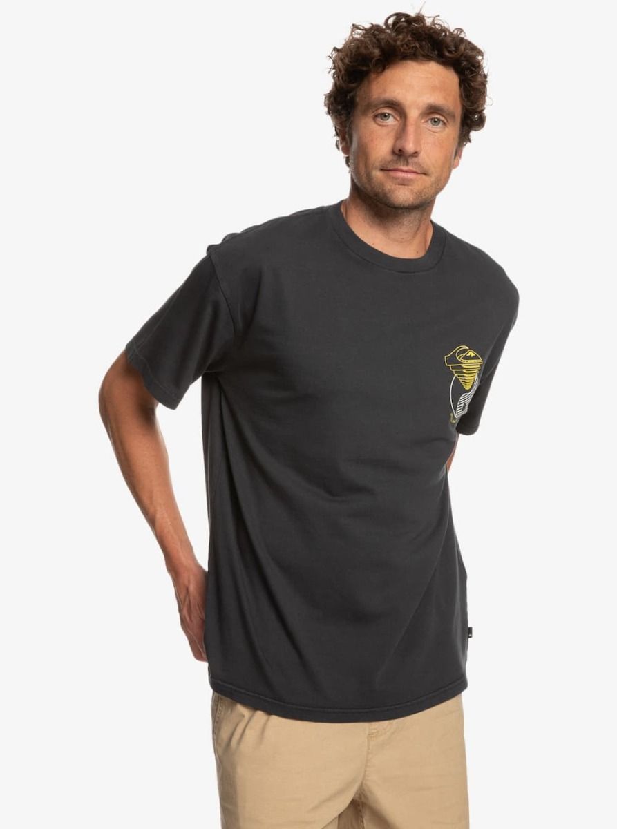 La camiseta de manga corta Out There negra para hombre tiene el sello de garantía Quiksilver.