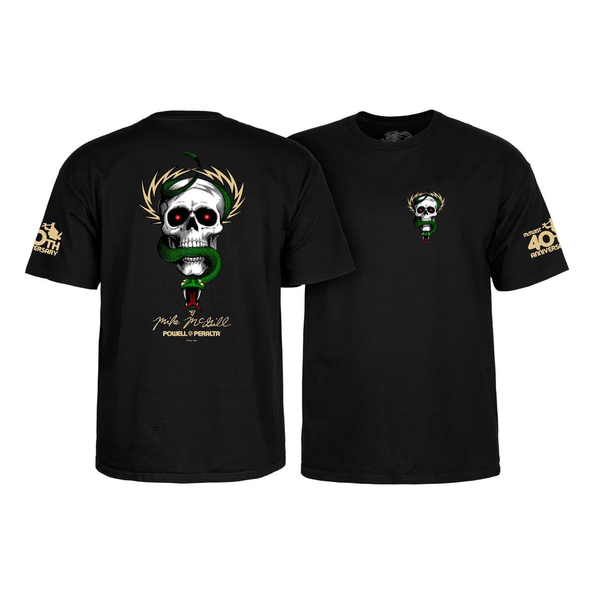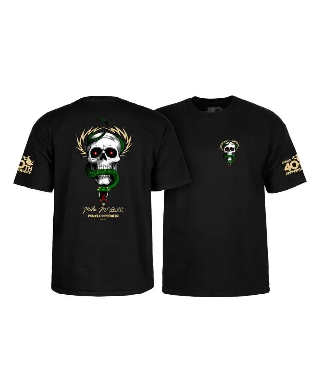 Camiseta de manga corta Powell Peralta Mike McGill Skull & Snake 40 Aniversario en color negro para hombre (Edición Limitada)