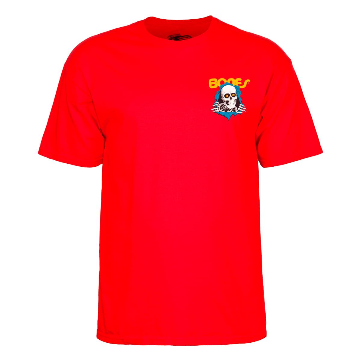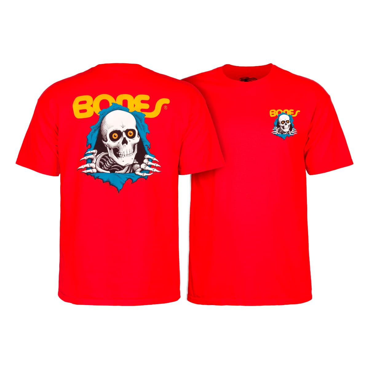 Esta camiseta streetwear roja viene con el gráfico skater más icónico de todos los tiempos "The Ripper". Este gráfico, ilustrado por VCJ (Vernon Courtland Johnson) en 1983, se utilizaba al principio como sticker de "Bones sold here" para los distribuidores pero con el tiempo dio el salto a las camisetas y finalmente a las tablas de skate para convertirse en un básico atemporal de Powell Peralta.