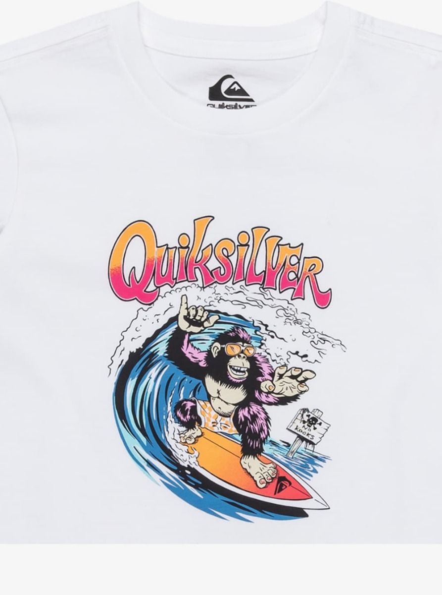 Para los pequeños que ya sienten la llamada del mar, llega esta camiseta Quiksilver con toda la energía de las olas. La Kong Story en tono blanco (White) combina la suavidad del algodón con un diseño divertido que rinde homenaje a la cultura del surf.