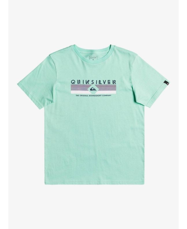 Esta camiseta de corte normal, clásico y cómodo, cuenta con cuello redondo, manga corta y una serigrafía original Quiksilver estampada en el pecho.
