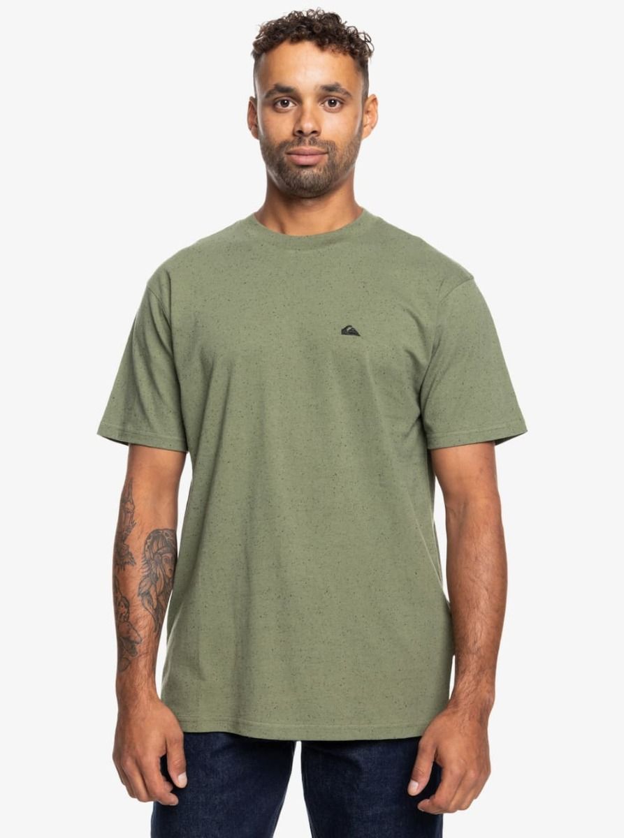 La camiseta para hombre Nep Screen S/S Tee en tono verde (Four Leaf Clover) de Quiksilver está confeccionada con suave tejido Nep de 97% algodón y 3% poliéster (160g/m2).