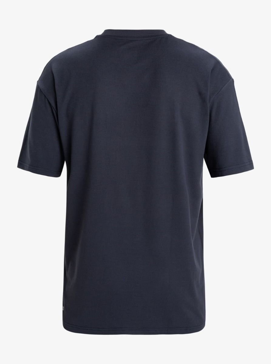 La camiseta anti-abrasión para hombre Everyday Surf Tee S/S UPF 50+ en tono azul marino oscuro (Dark Navy) de Quiksilver está confeccionada con tejido finamente cepillado en mezcla de 92% poliéster reciclado y 8% elastano, que absorbe la humedad, elimina el sudor y mantiene la piel seca.
