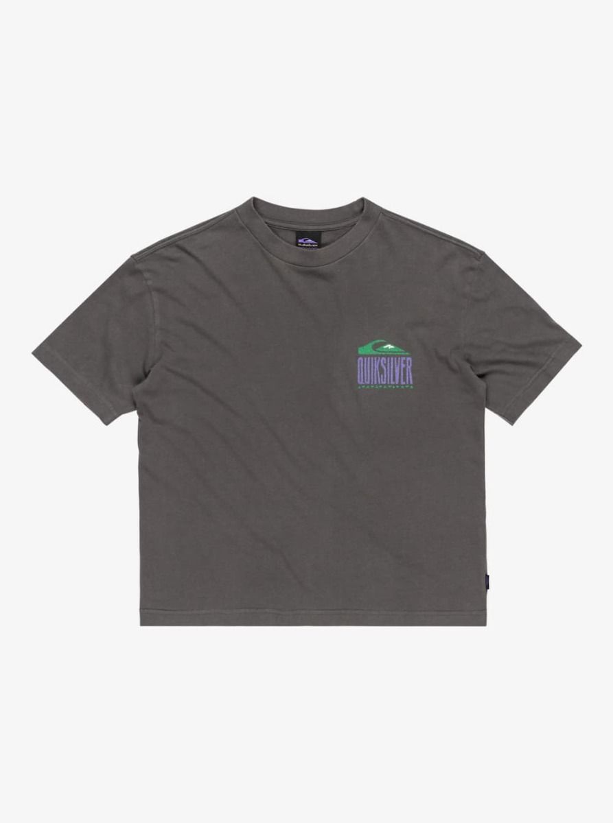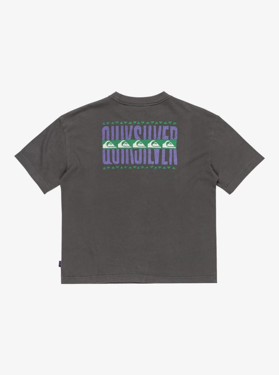 Camiseta Quiksilver de algodón orgánico para niño con gráfico de temporada en el pecho y la espalda. Estilo cómodo y auténtico con lavado vintage.