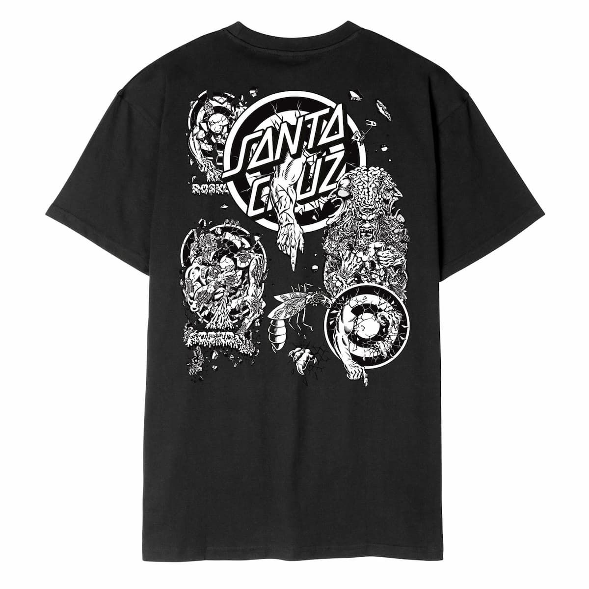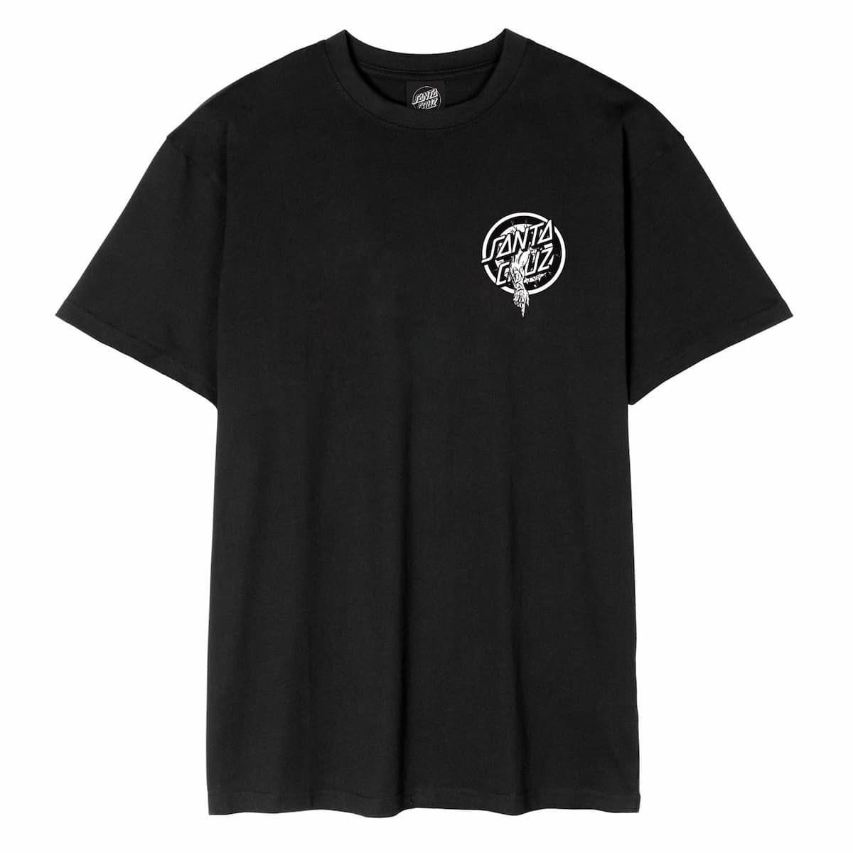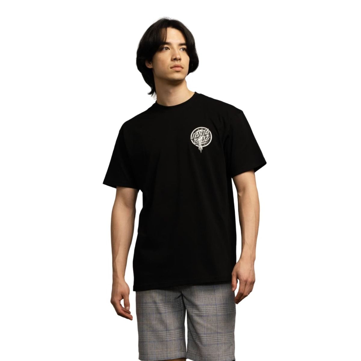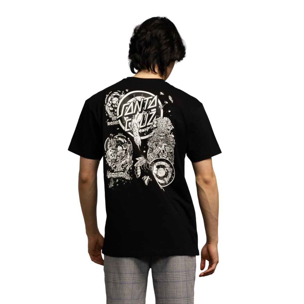 Esta camiseta skater en tono negro presenta corte clásico, manga corta y cuello redondo para adaptarse a cualquier estilo, junto con estampados gráficos originales de Santa Cruz diseñados por Rob Roskopp impresos en el lado izquierdo del pecho y en la espalda.