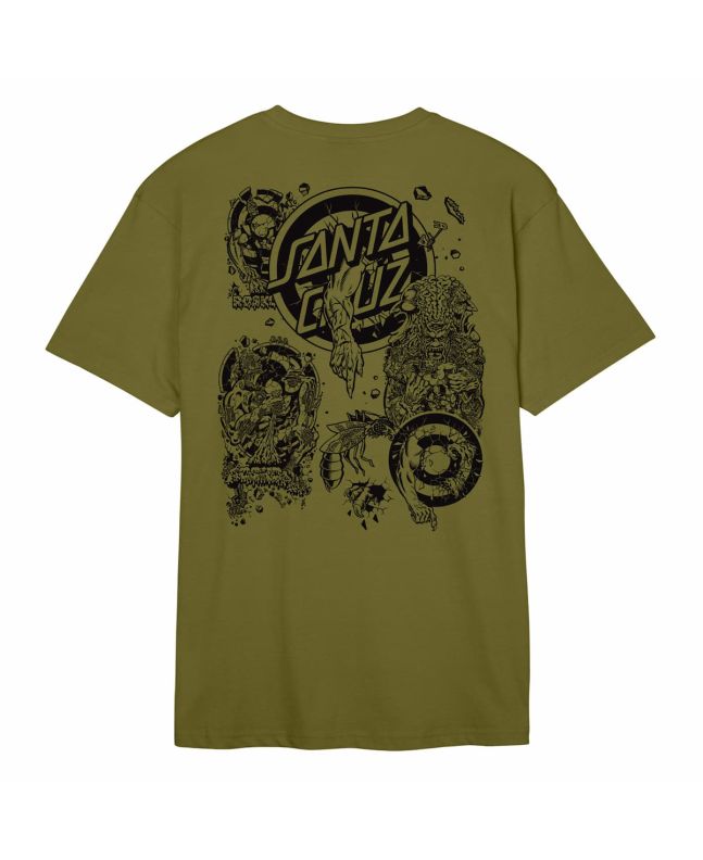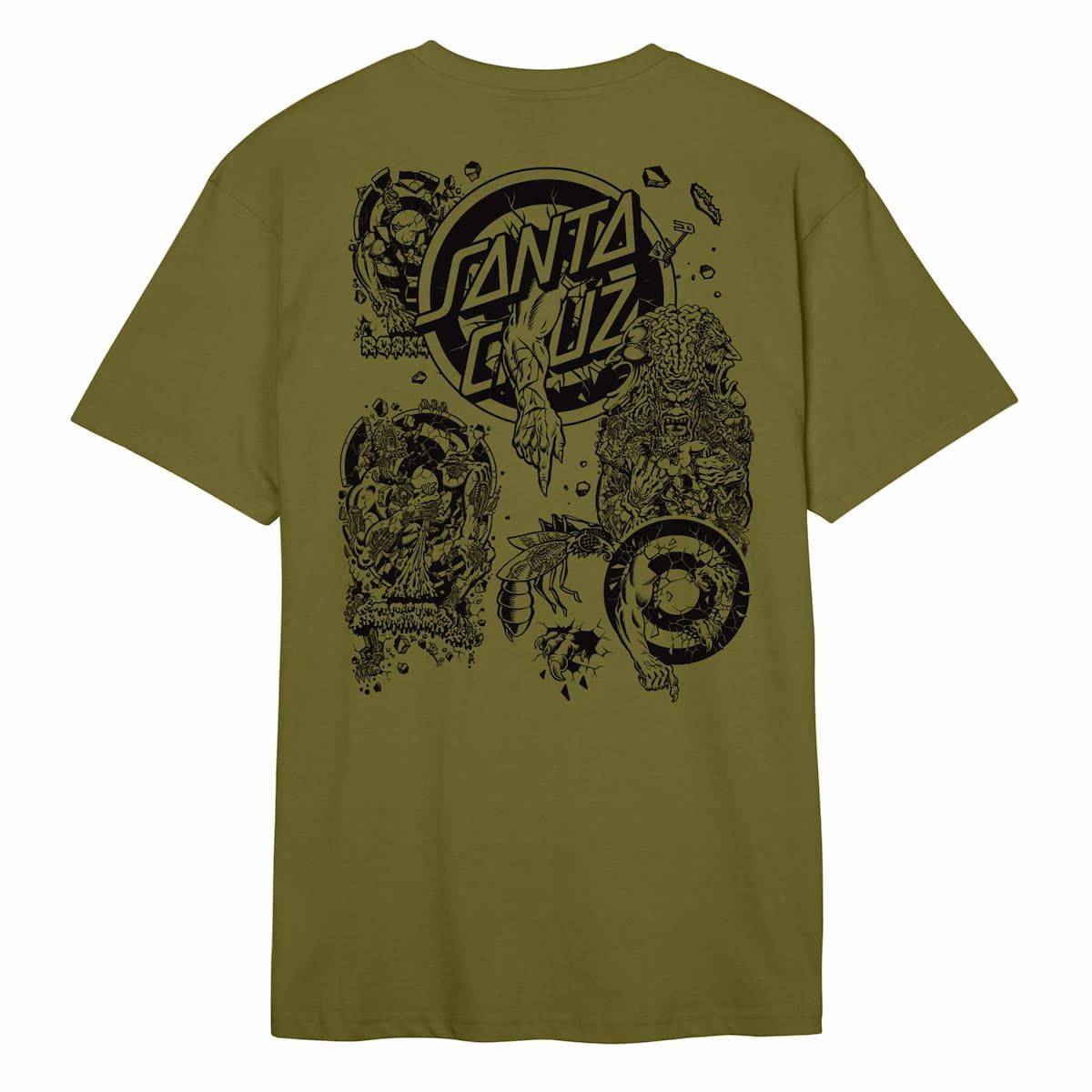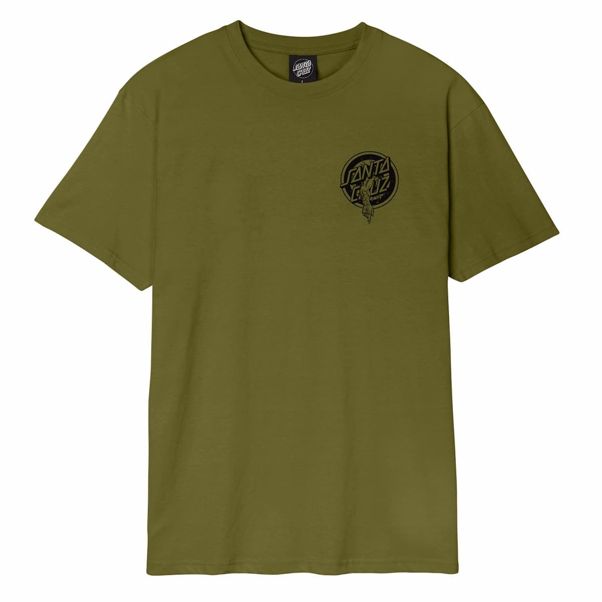 Esta camiseta skater verde presenta corte clásico, manga corta y cuello redondo para adaptarse a cualquier estilo, junto con estampados gráficos originales de Santa Cruz diseñados por Rob Roskopp impresos en el lado izquierdo del pecho y en la espalda.