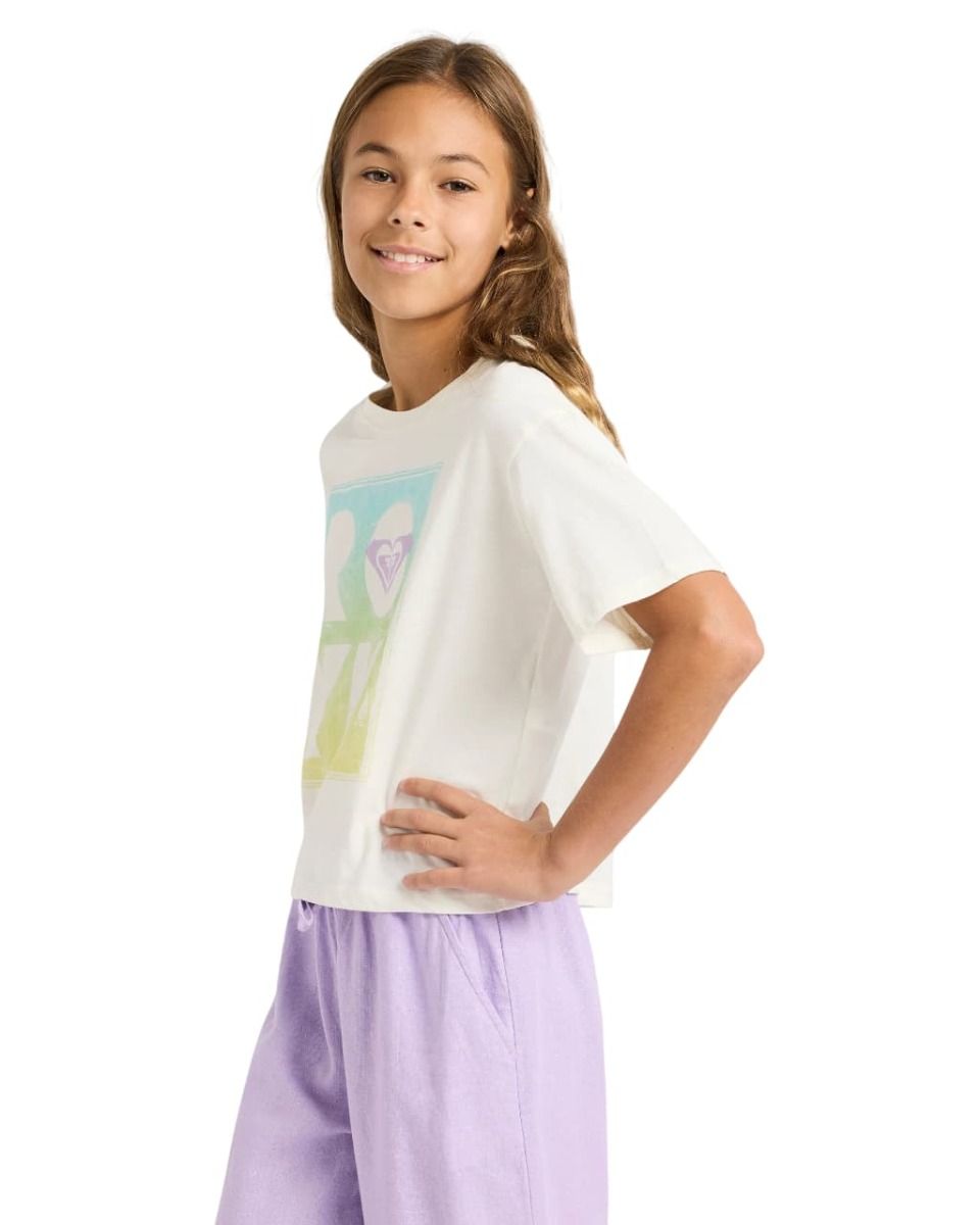 Camiseta Roxy Girl blanca de algodón orgánico para niña, cómoda, transpirable y con ajuste loose fit ideal para el día a día.