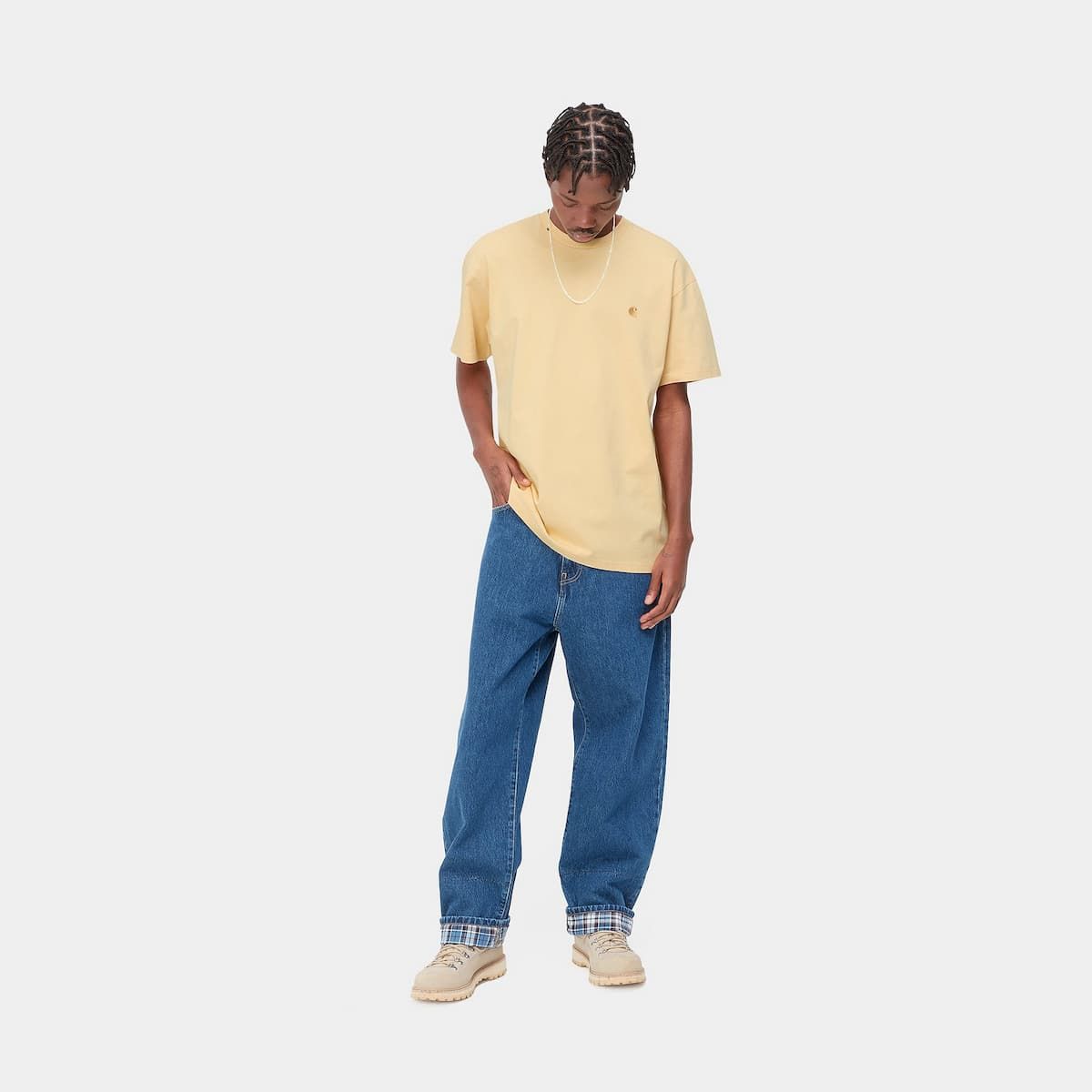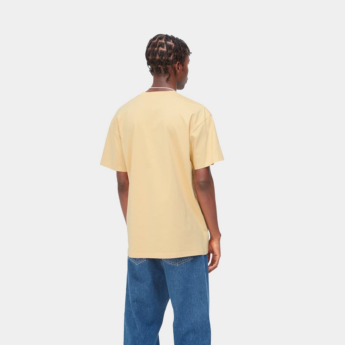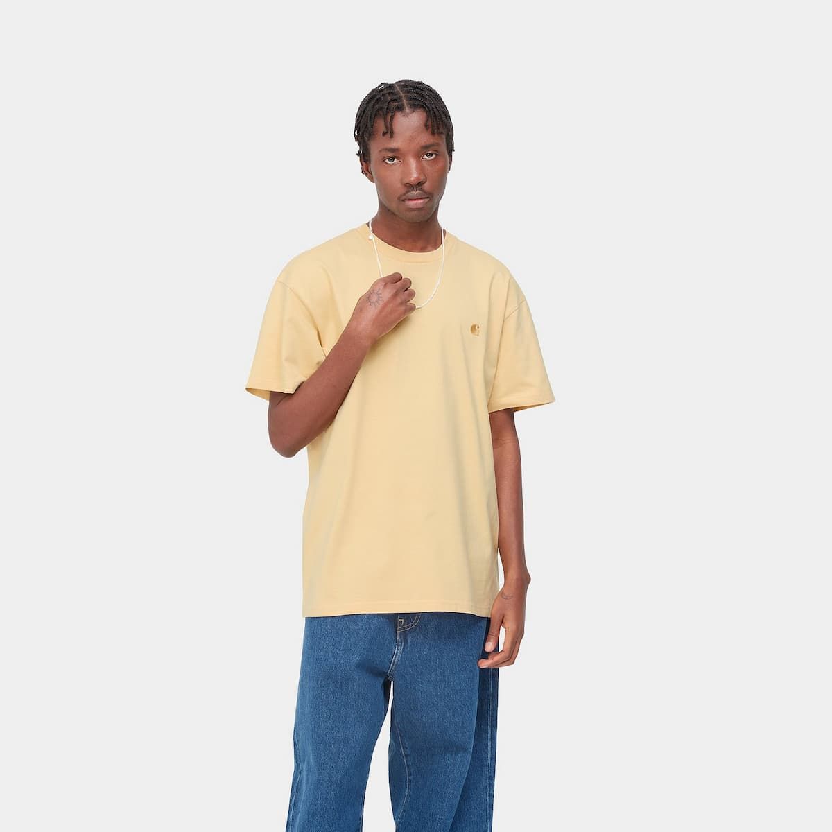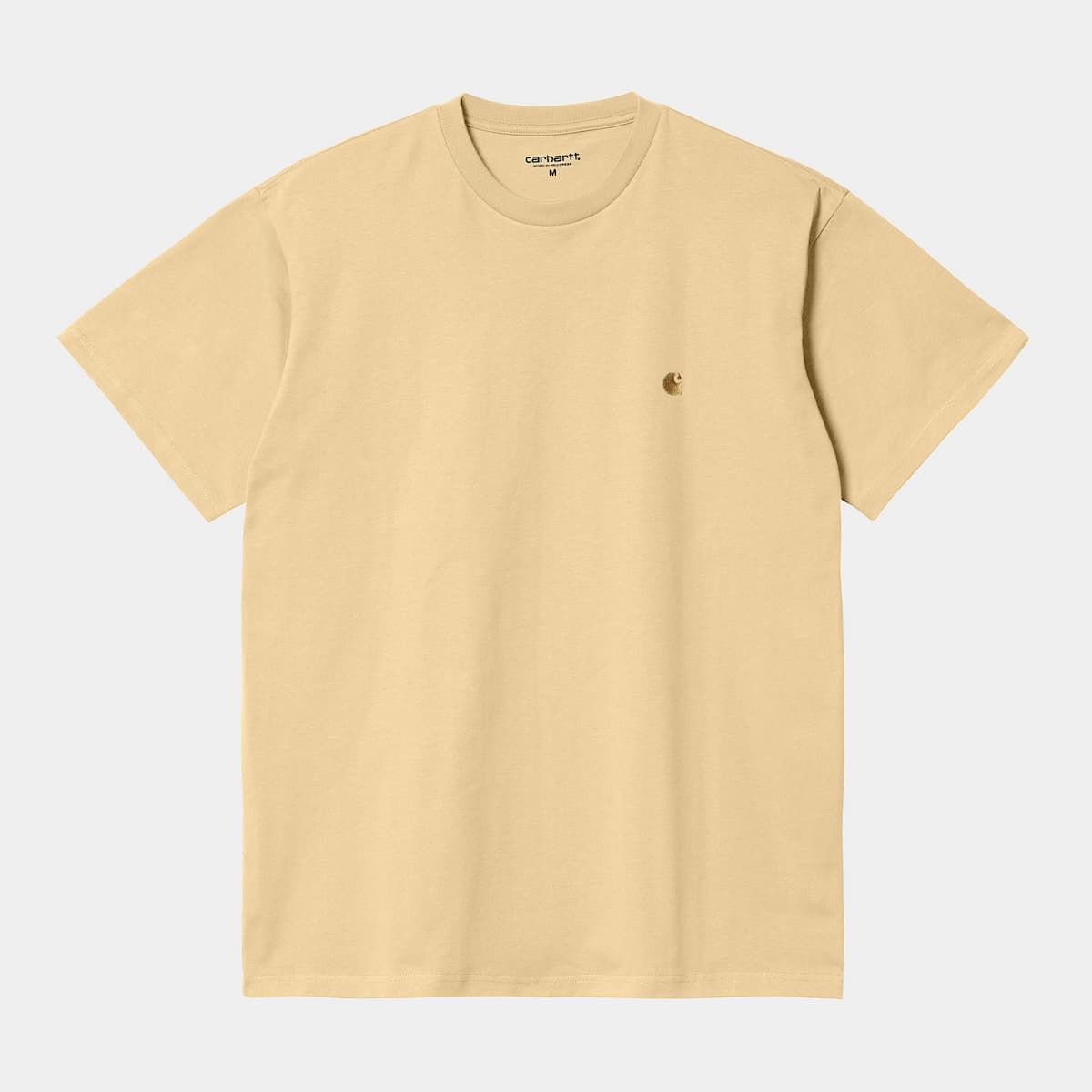 La camiseta para hombre S/S Chase T-Shirt en amarillo con el logo en dorado (Citron-Gold) de Carhartt WIP está confeccionada con 100% punto jersey de algodón sencillo peinado (235g/m2).
