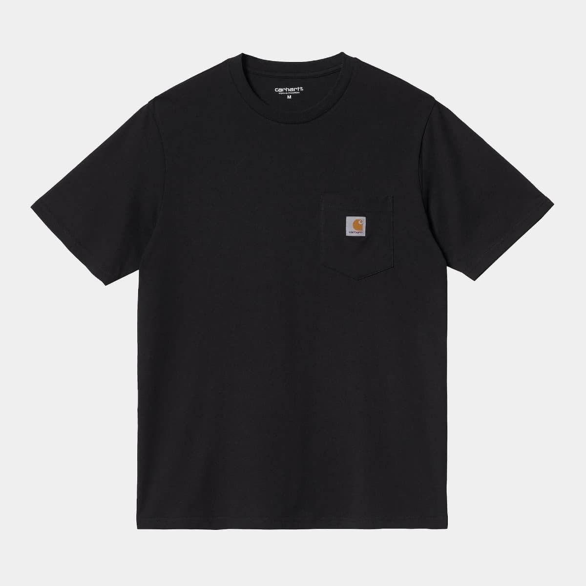 La camiseta de manga corta con bolsillo Pocket T-Shirt negra para hombre tiene el sello de garantía Carhartt Work In Progress estampado en el cuello interior.