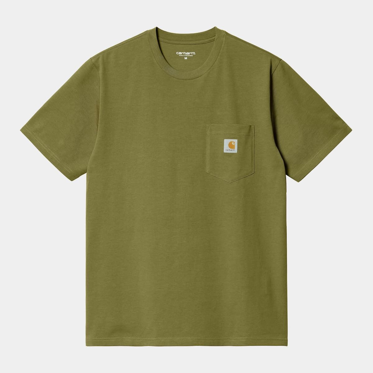 Esta camiseta de ajuste regular para hombre cuenta con cuello redondo, manga corta, bolsillo en el pecho y una etiqueta cuadrada con el logo de Carhartt tejida en el bolsillo.