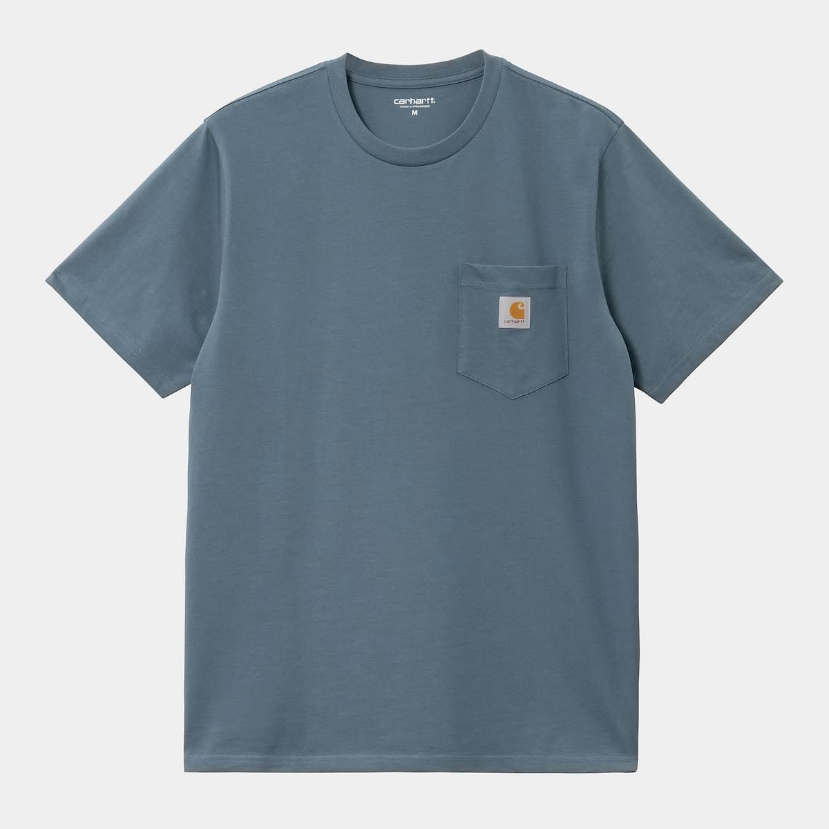 La camiseta con bolsillo para hombre S/S Pocket T-Shirt en azul (Storm Blue) de Carhartt WIP está confeccionada con 100% tejido punto jersey de algodón sencillo (190g/m2).