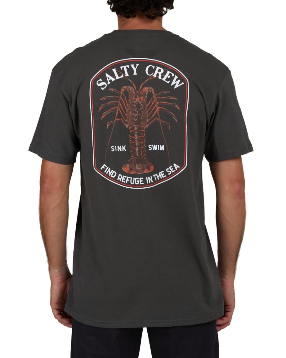 Deja que el espíritu del mar te acompañe durante tus paseos en barco o simplemente caminando por la orilla con la Camiseta de manga corta Spiny Standard color Charcoal para hombre de Salty Crew.
