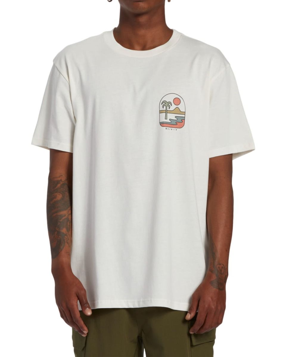 La camiseta para hombre Sands S/S Tee en tono blanco hueso (Off White) de Billabong está confeccionada con tejido de 100% algodón orgánico (160g/m2).