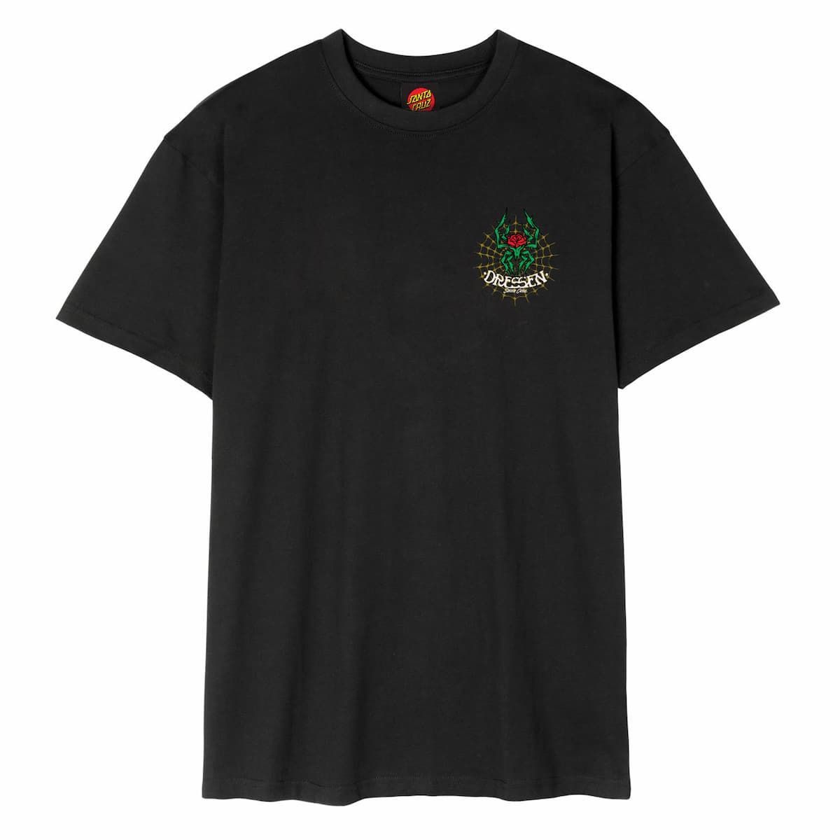 Camiseta de manga corta Santa Cruz Dressen Rose Cross 2 en color negro para hombre
