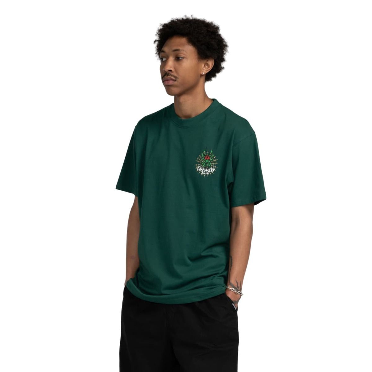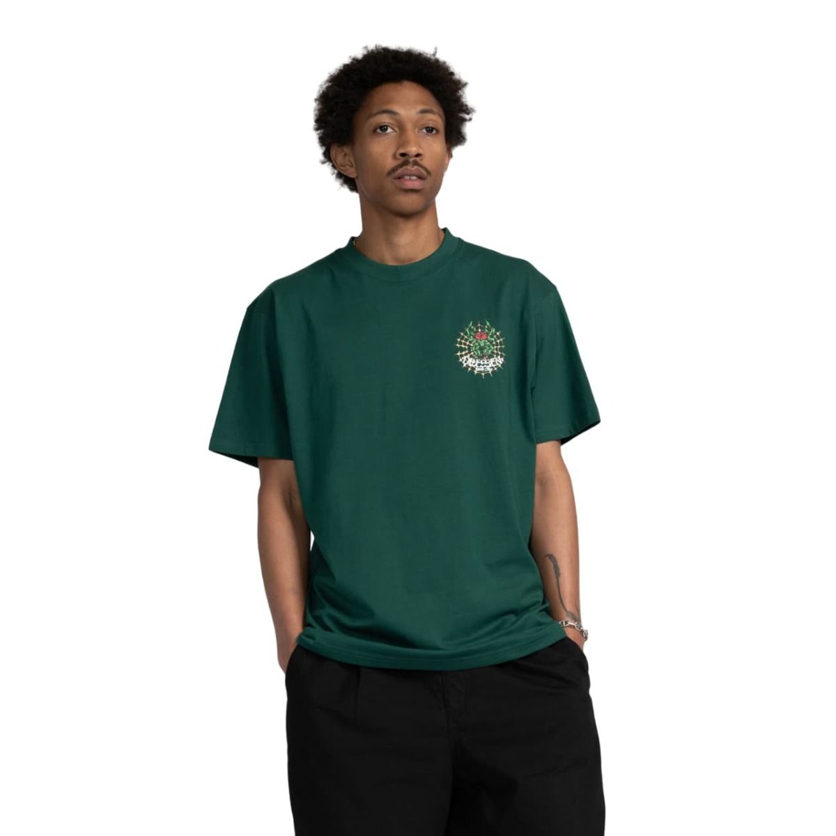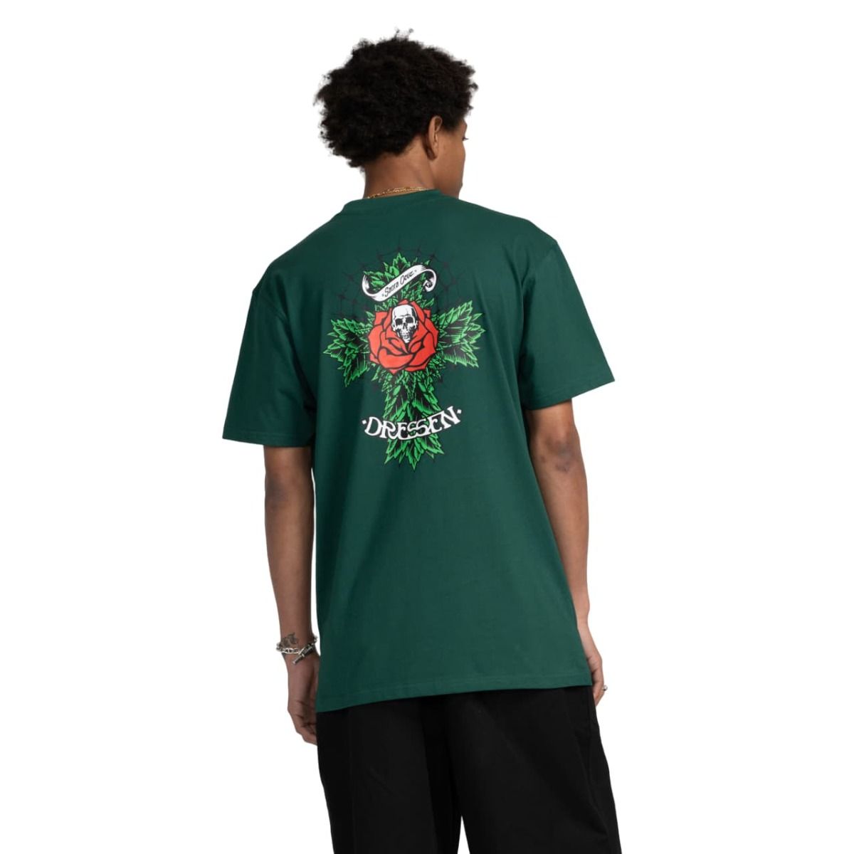 La camiseta de manga corta para hombre Dressen Rose Cross 2 T-Shirt en tono verde selva (Rainforest) de Santa Cruz está fabricada con 100% tejido punto jersey de algodón (200gsm) para una sensación de suavidad y confort durante todo el día.