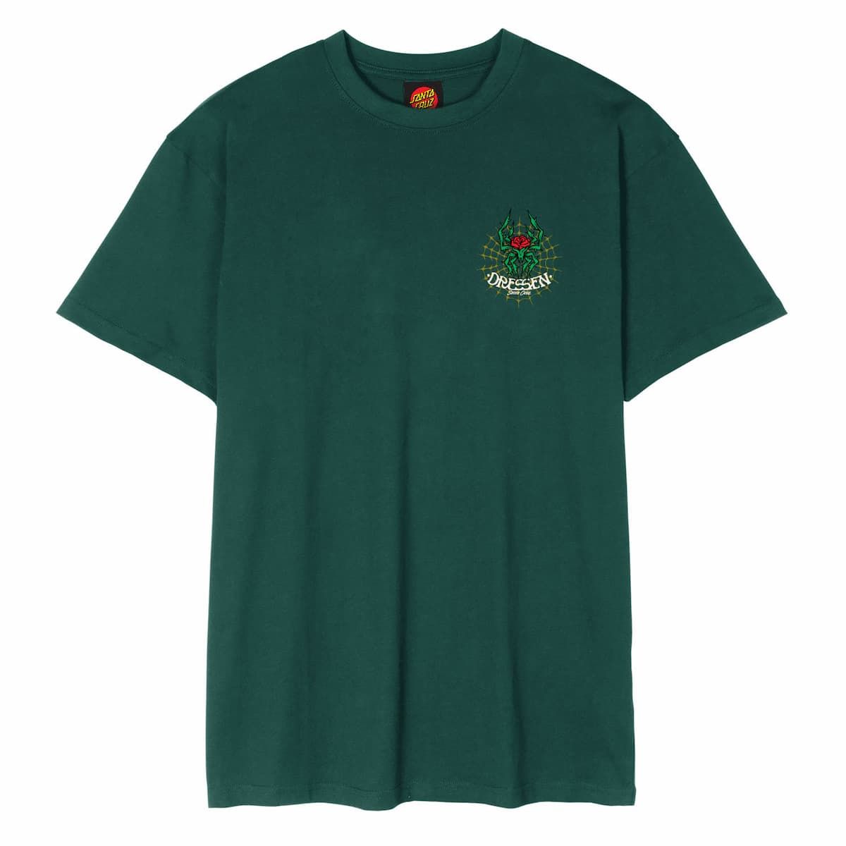 Ya sea que estés patinando en las calles o simplemente disfrutando del día a día, la Camiseta Santa Cruz Dressen Rose Cross 2 color Rainforest te ofrece un toque rebelde que fusiona la cultura skater y actitud sin esfuerzo.