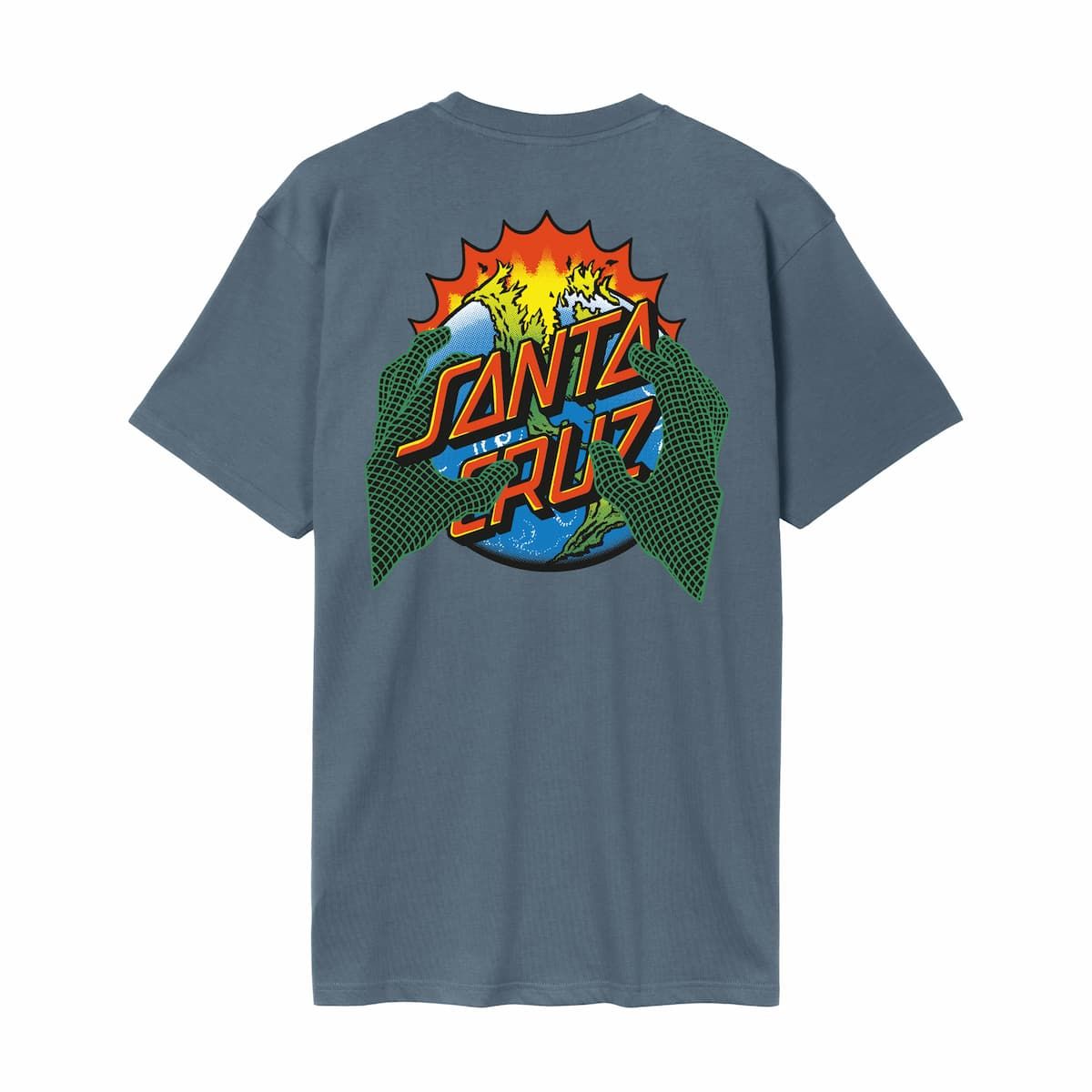 En el pecho, un logo explosivo que anticipa lo que encontrarás en la espalda: una reinterpretación del clásico dot de Santa Cruz devorado por unas manos verdes que desgarran el planeta. Colores vibrantes, estética cómic y un mensaje potente en clave skate.