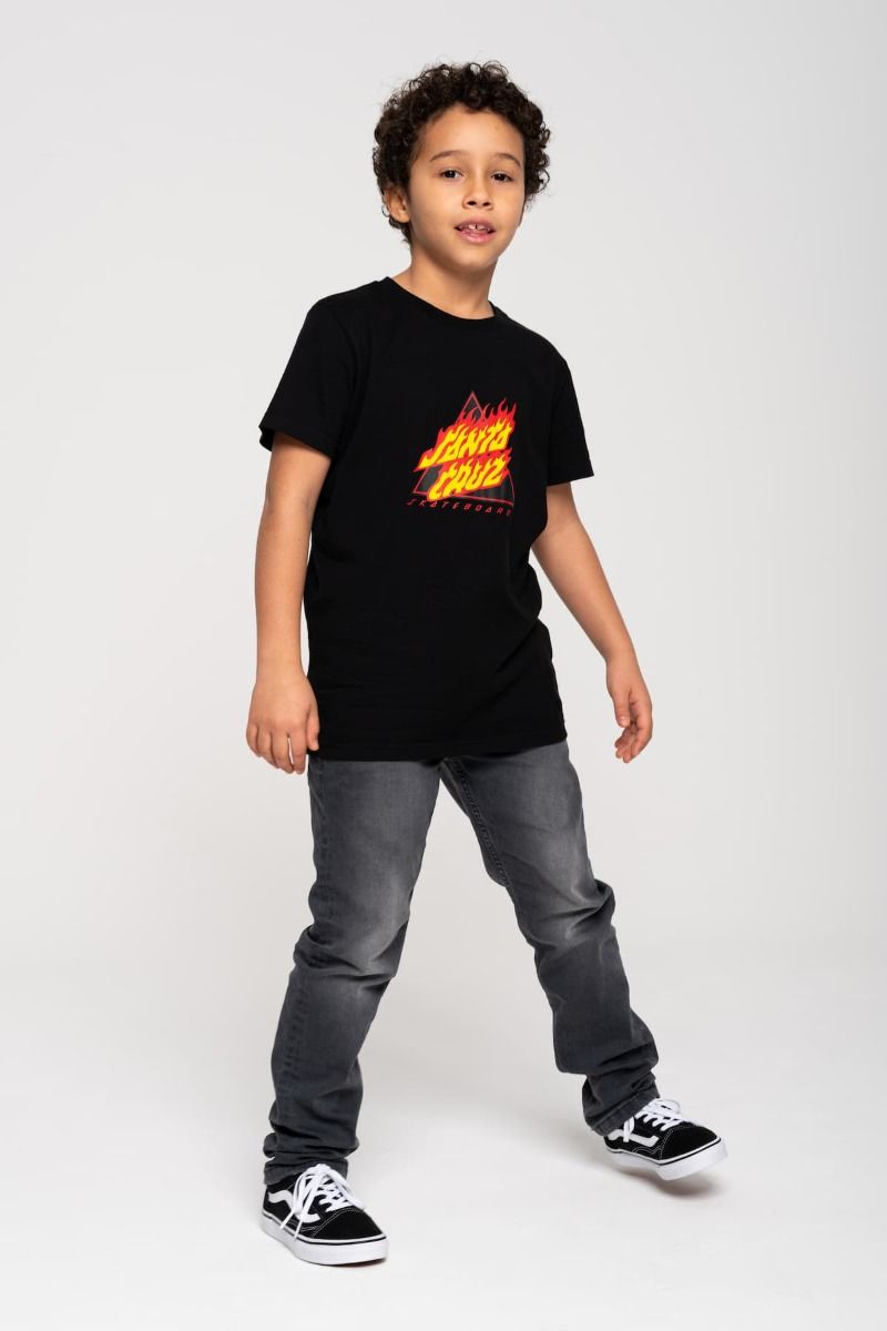 Camiseta de manga corta Santa Cruz Youth Flamed Not a Dot Front en color negro para niño/a
