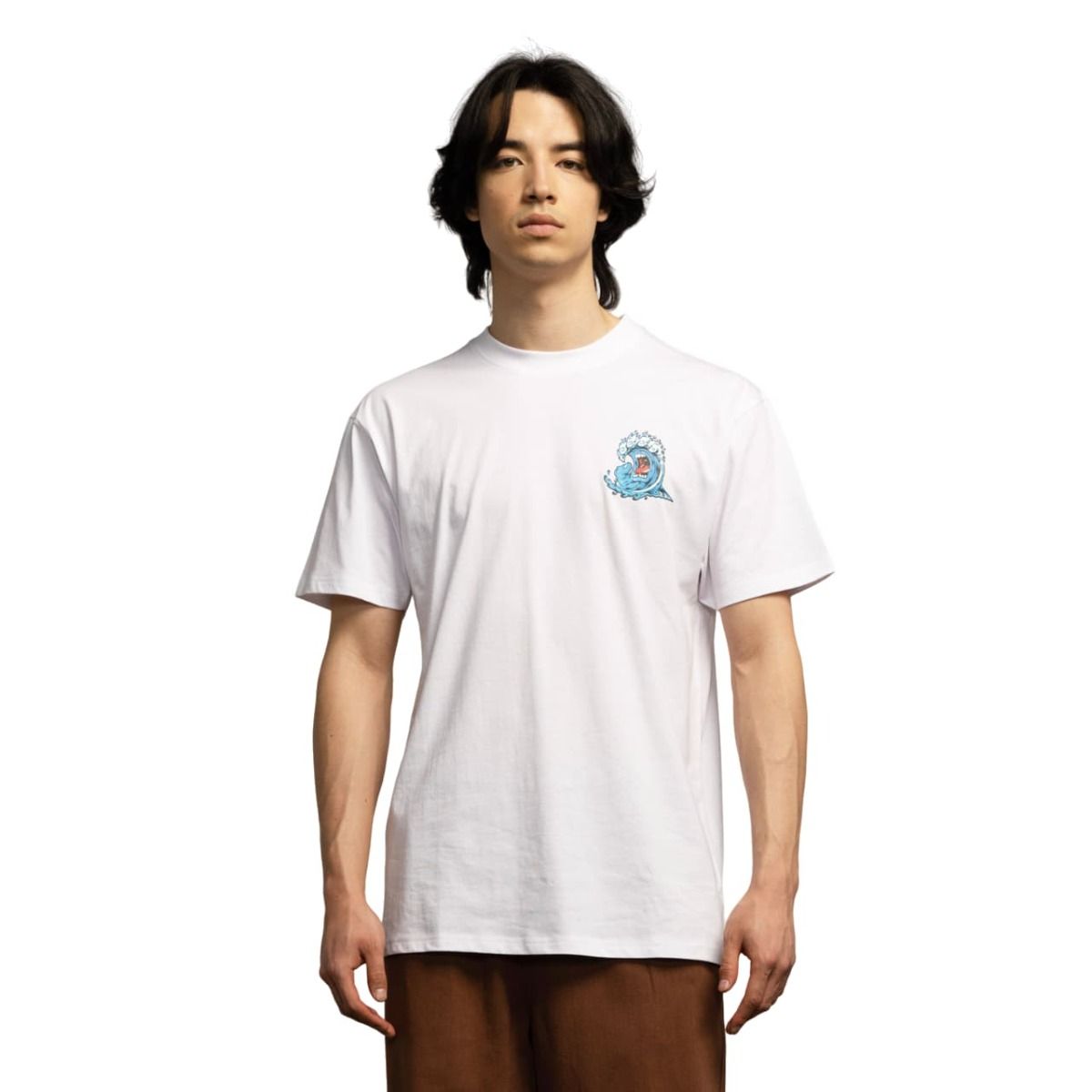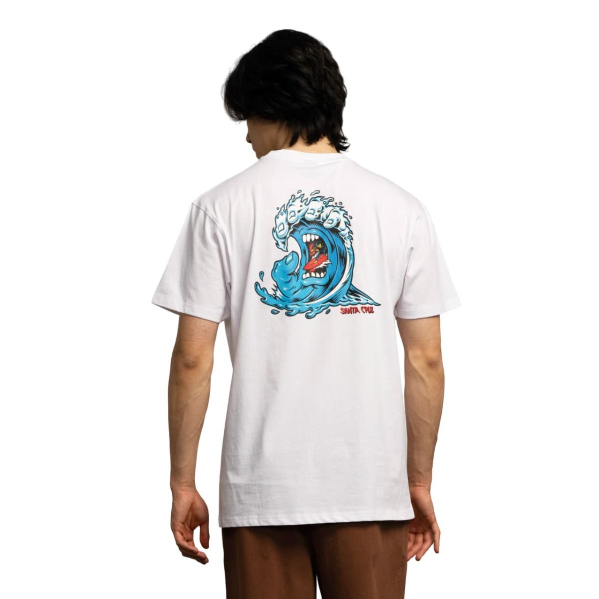 Lleva contigo el espíritu de la costa en cada aventura con la Camiseta Screaming Wave Blanca para hombre de Santa Cruz Skateboards.