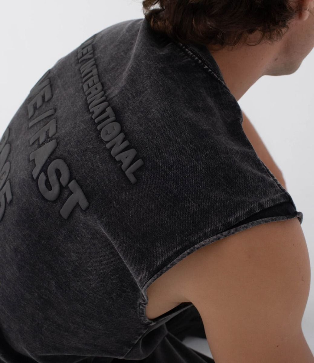 El corte relajado y sin mangas cae más allá de la costura del hombro, dándole un aire musculoso y desinhibido. Está confeccionada en algodón 100% de punto grueso, lo que le aporta cuerpo y presencia, sin renunciar a la comodidad. Una camiseta para moverse con libertad y marcar territorio allá donde vayas.