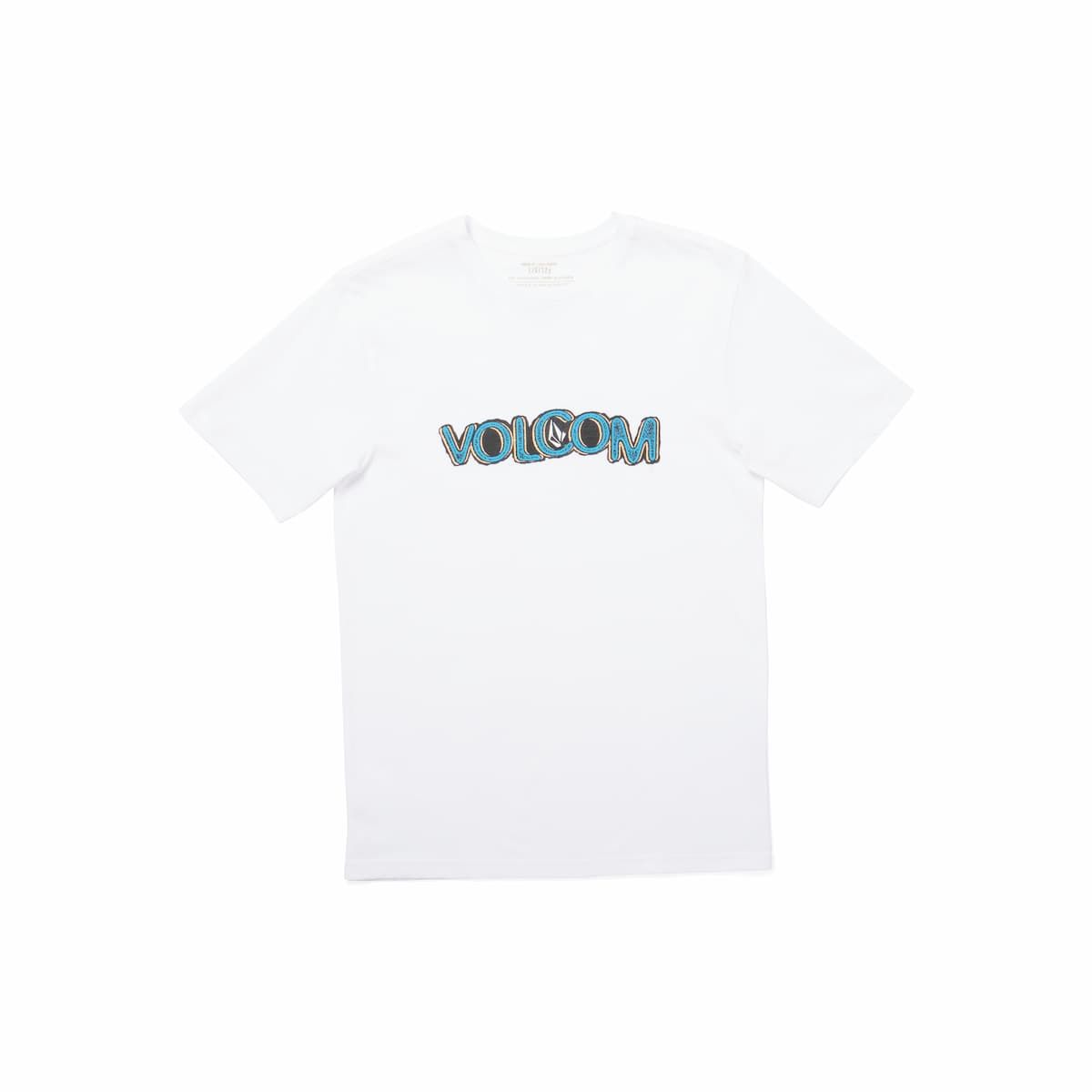 La camiseta de manga corta Squable Boy Blanca para niño tiene el sello de garantía Volcom termofijado en el cuello interior.
