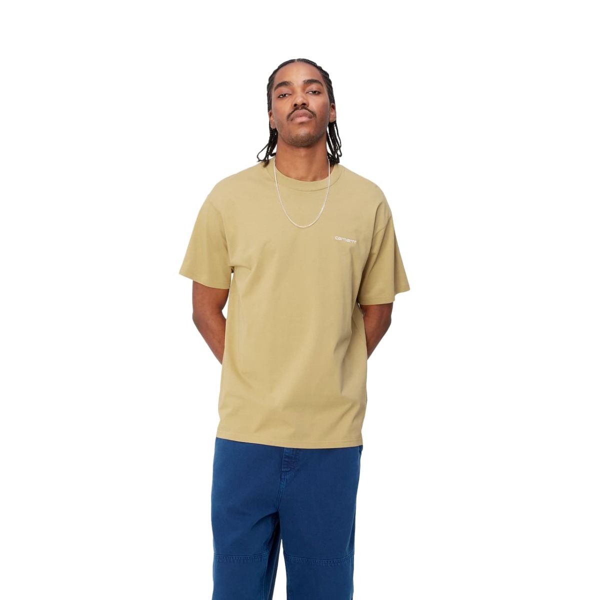 Camiseta de manga corta Carhartt WIP Script Embroidery en color beige con el logo blanco para hombre